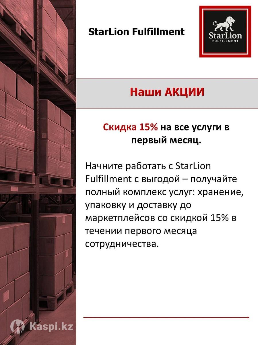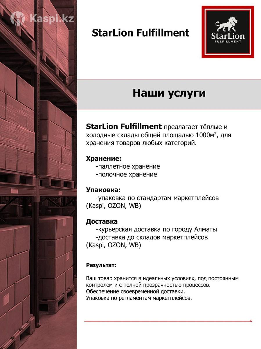Ищете надежного партнера для хранения, упаковки и доставки ваших товаров. Представляем вам StarLion Fulfillment – складской комплекс площадью 1000 м2, включая теплый и холодный склад, готовый быстро и качественно работать под ваш бизнес. Что мы предлагаем: Хранение товаров на складах площадью 1000 м2 с отделением теплого и холодного режима — подходит и для обычных, и для температурно-чувствительных товаров. Комплекс услуги фулфилмента: приемка, хранение, упаковка, маркировка, отгрузка. Доставка ваших товаров на маркетплейсы Kaspi, Ozon, WB — освобождайте время на развитие, не на логистику. Гибкие условия под ваш ассортимент и объемы. Профессиональный складской сервис, оперативность, внимание к деталям (упаковка, подготовка к отгрузке). Поченьу выгодно работать с нами: Один партнер закрывает сразу хранение + упаковку + доставку — меньше подрядчиков, проще контроль. Экономия ваших ресурсов: не нужно отстраивать собственный склад и логистику. Подготовка товаров под требования маркетплейсов — минимизируем риски с возвратами и отказами при приемке. Возможность работы с различными категориями товаров благодаря наличию холодного склада. Для кого: Интернет-магазины и продавцы, выходящие на маркетплейсы. Производители и импортеры с необходимостью внешнего склада. Бизнесы с товарами, требующими холодного хранения или особых условий. Контакты для связи: Телефон: + Расположение: Алматы, улица Халиуллина 168к5 Звоните или пишите сейчас, и мы подготовим подробное коммерческое предложение с условиями!