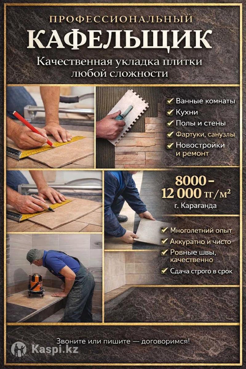 ✔ Укладка кафеля ✔ Керамогранит ✔ Ванная, туалет, кухня ✔ Полы и стены ✔ Аккуратная и качественная работа 📐 Опытный мастер ⏱ Сдача в срок 💰 Цены договорные 📞 Телефон: 📍 г. Караганда