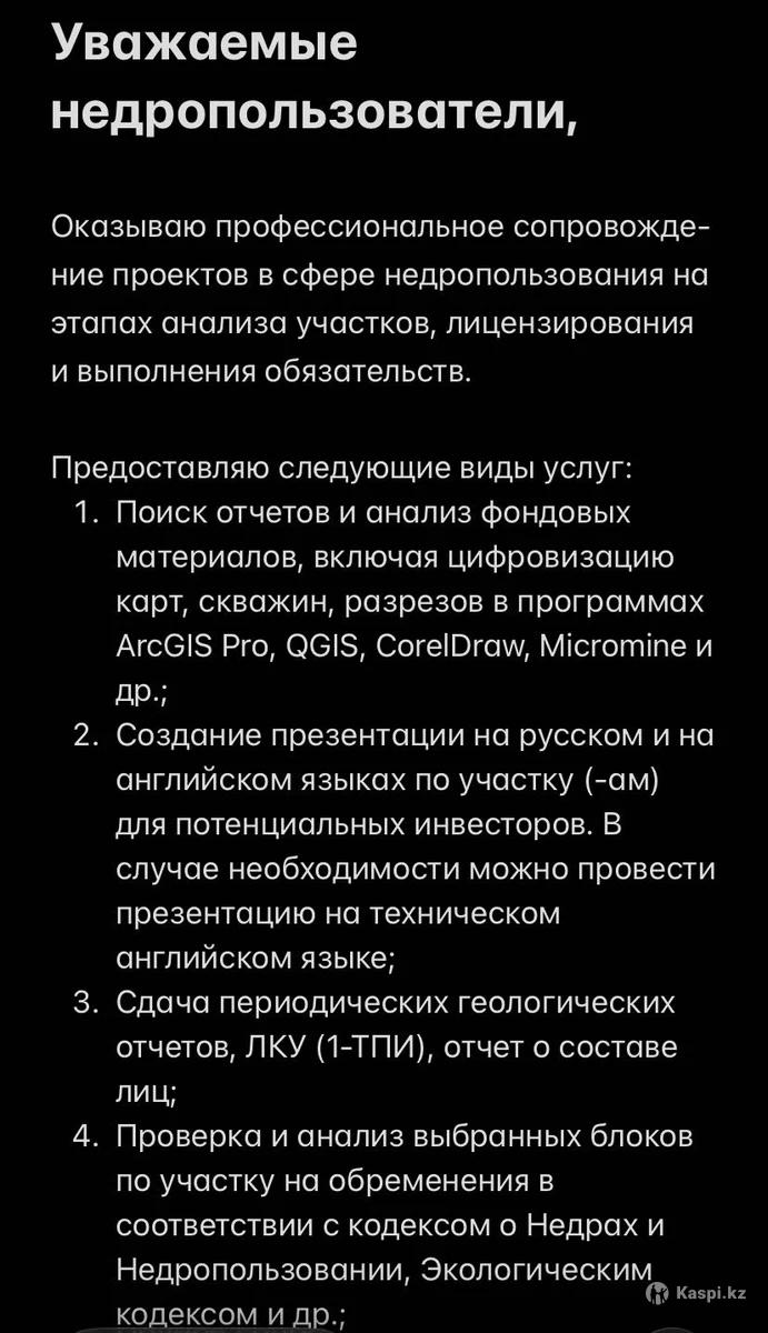Услуги в сфере недропользования