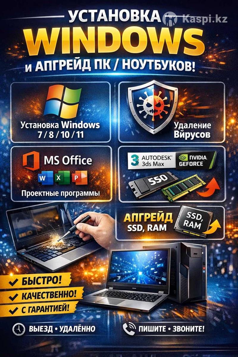 🔧 Установка Windows 7 / 8 / 10 / 11 🛡️ Удаление любых вирусов, рекламы, майнеров 📊 Установка и настройка MS Office 🧱 Установка проектных программ: — Autodesk — 3ds Max — другое профессиональное ПО 🧹 Чистка ПК и ноутбуков от пыли ❄️ Замена термопасты (перегрев, шум) ⬆️ Апгрейд ноутбуков и ПК: — SSD — RAM — ускорение работы системы 💻 ПК и ноутбуки 📍 Выезд / удалённо ⚡ Быстро • Качественно • С гарантией