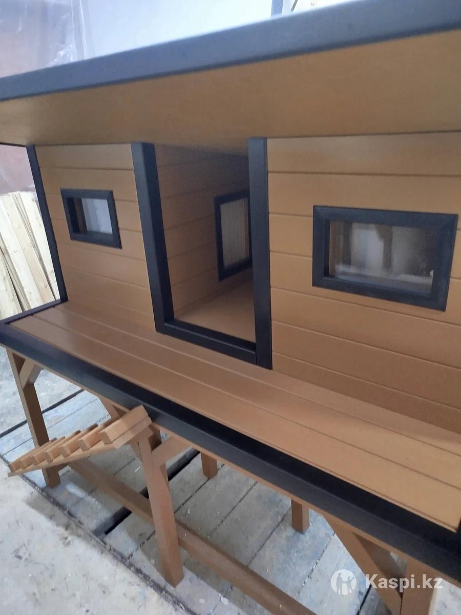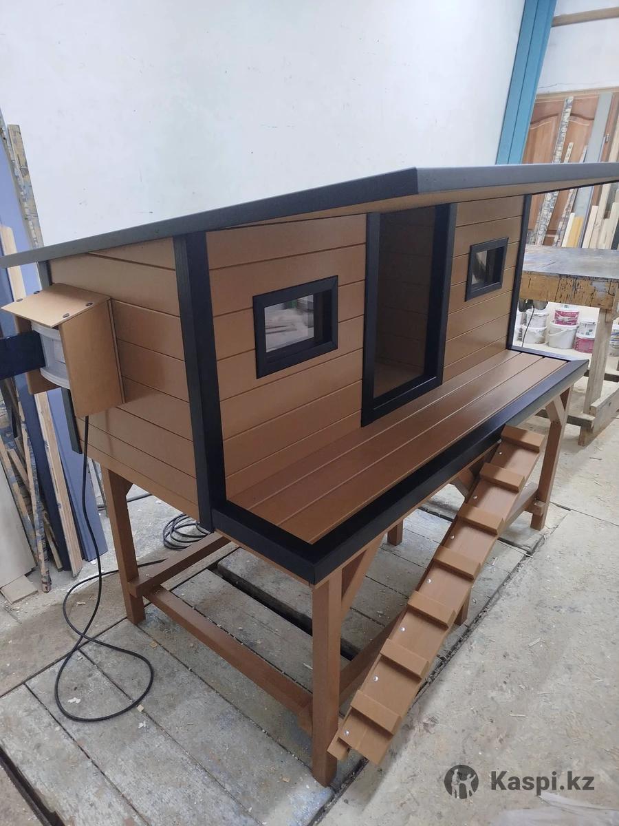 Утепленный домик для кошек, с подогревом пола На одной площадке два домика Внутренний размер каждого 51 на 51 см Общий размер 160 на 90 см Высота 120 см Домик изготовлен из вагонки лиственница сорта А Окрашен профессиональной краской для фасадных работ по дереву Окошки два стекла(оргстекло 3мм) Крыша на петлях Крыша покрыта гибкой черепицей На входах шторки из мягкого стекла Подогрев пола с терморегулятором Самовывоз