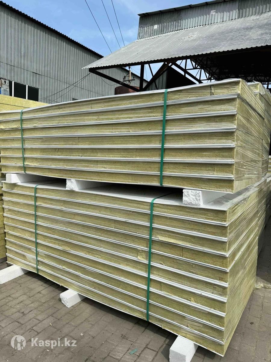 В наличии сэндвич панели кровельные , утеплитель мин плита длина 7м ., Ширина 1 м., количество 147 м2 , 150мм толщина , цвет 7004/9003 . Цена тенге 14250 за м2 .