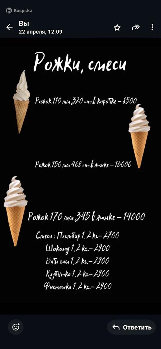 Рожки производство Россия фирма Давайс, сладкие. В наличии только указанные размеры , только одноцветные Самовывоз, индрайвер, находимся в Шахтинске Большая партия, целые,доставленны на паллетах. Цены смотрите на фото Так же в наличии смеси для мягкого мороженого, стаканы 700 мл.для лимонадов с крышкой, 4000 пачка . Минимальный заказ смесей от 10 пачек, рожки от 1 коробки . Остальные позиции от 10000 в ассортименте. Красители для ваты , палочки, креманки бумажные и т.д.