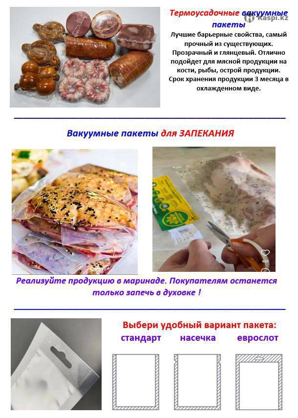 Вакуумные пакеты от Российского завода-производителя. Отличное качество и низкая цена. Для чучела, рыбы, колбас, снеков. Широкий ассортимент размеров, плотность от 60 до 125 микрон