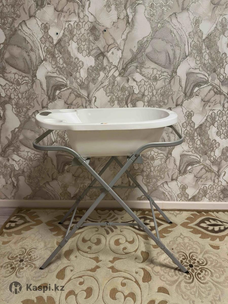 Ванночка для купания эргономичной формы для правильного безопасного положения малыша. Благодаря резиновому покрытию трем точкам опоры (две под мышками, одна между ножек), ребенок не будет соскальзывать в воду. Встроенный термометр — индикатор рекомендованного уровня воды. Возраст: 0–12 месяцев. Складная подставка для ванночек, которая не занимает много места при хранении. Ножки оснащены нескользящими резиновыми накладками.
