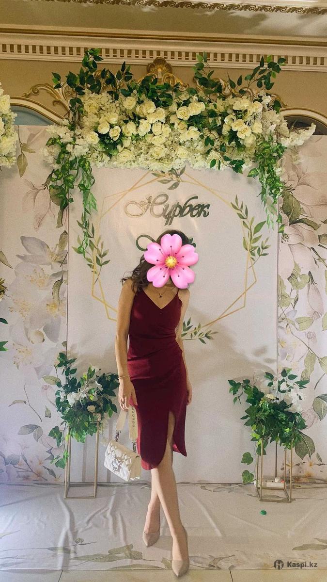 вечернее платье бордового цвета,на запах. подчеркивает фигуру,очень классно сидит.носила только 2 раза,в хорошем состояний