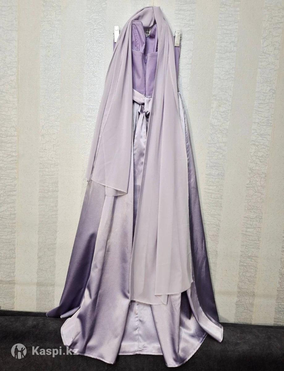 Вечернее платье, лиловый атлас Цвет: глубокий лиловый - Материал: плотный атлас с мягким блеском — выглядит дорого и элегантно - Корсаж с «китовым усом» — подчеркивает фигуру, надежно фиксирует грудь, создает красивый силуэт - Юбка многослойная, с удлиненной задней частью (шлейфом) и разрезом спереди — смотрится эффектно в движении - Идеально для выпускного, фотосессии, свадьбы или любого торжества Состояние: как новое (надевалось 1 раз). Размер S (42).