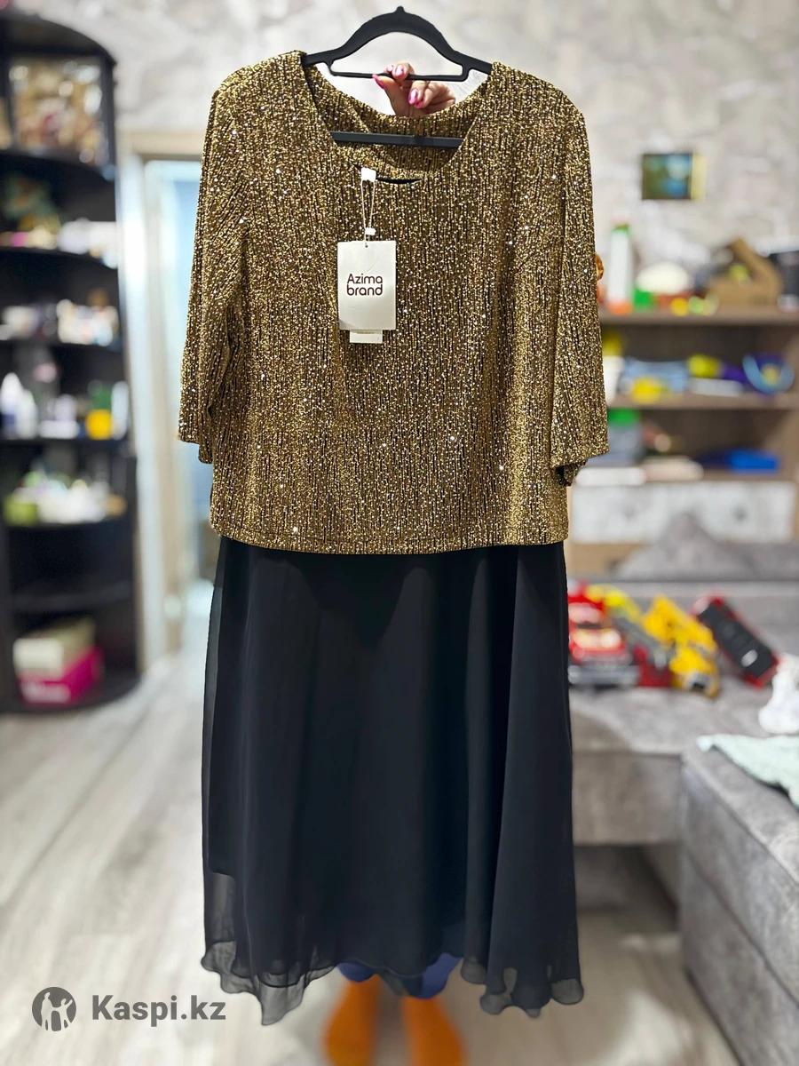 Новое платье, не подошел размер, размер 50, Черно-золотистое Состав: Полиэстер, Люрекс, шифон. Рукав три четверти Длина миди