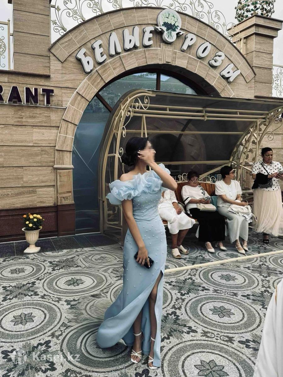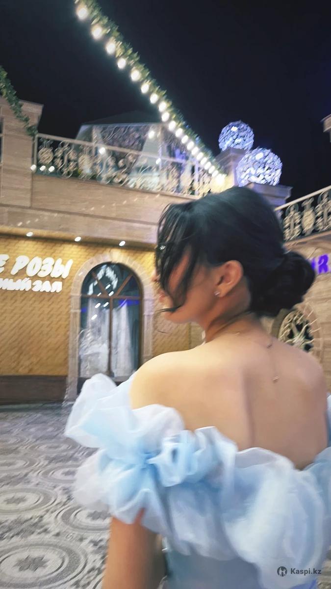 Вечернее платье голубое с бусинками, надевала всего один раз на выпускной Рост 163 +10см каблук