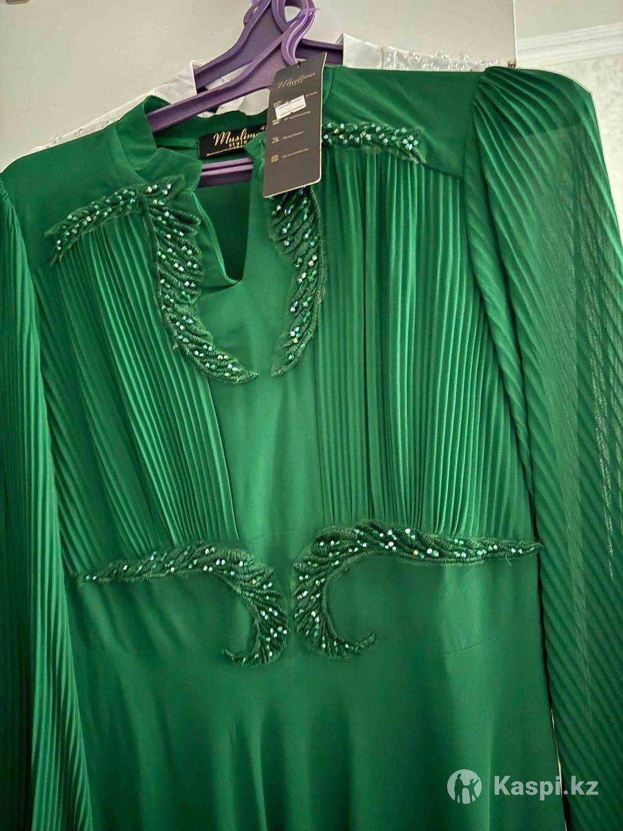 Вечернее платье изумрудного цвета, длина макси, размер 46-48.
