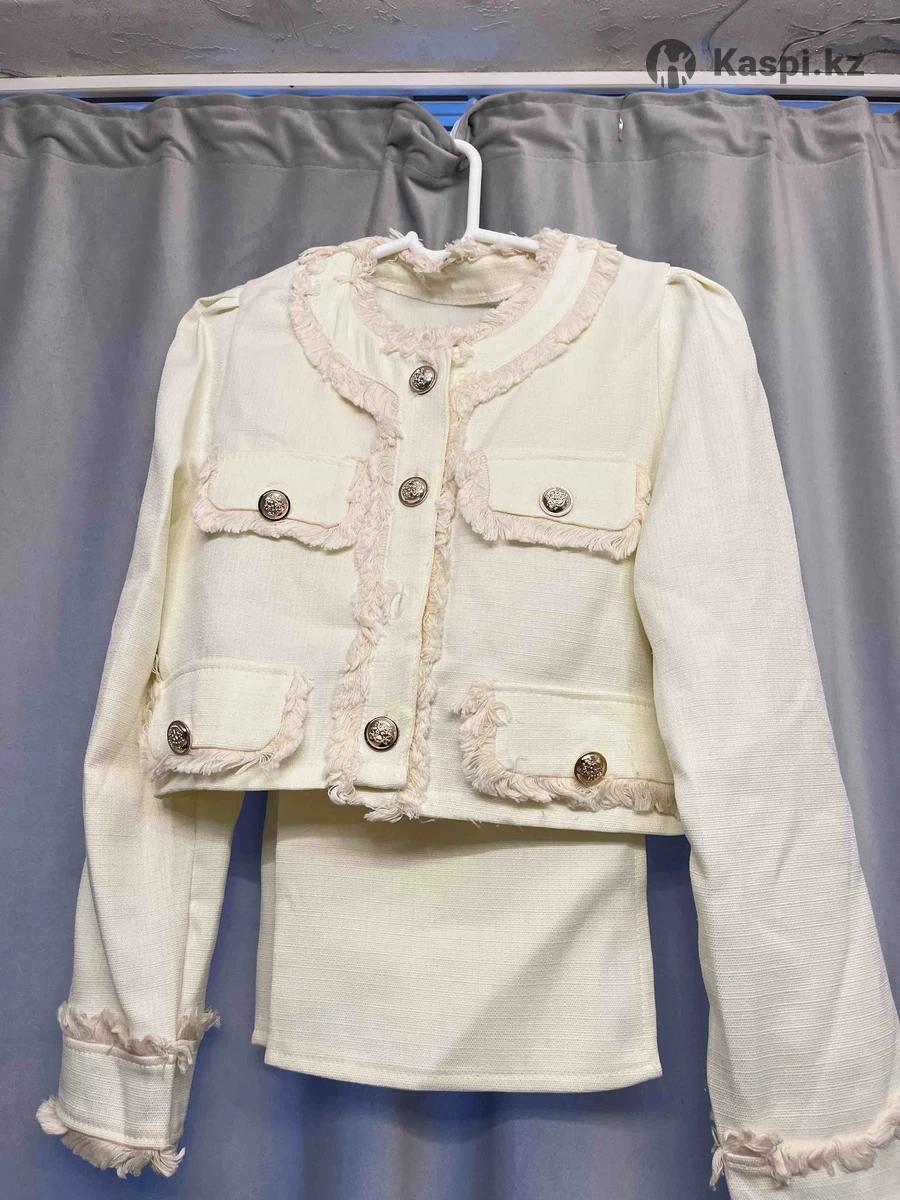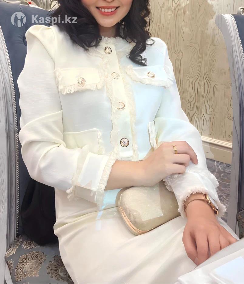 Двойка цвета айвори, можно носить костюм и юбка отдельно. Качество отличное. Надевалась только на свадьбу. Покупала за 20 000 тг, отдаю за 5 000.