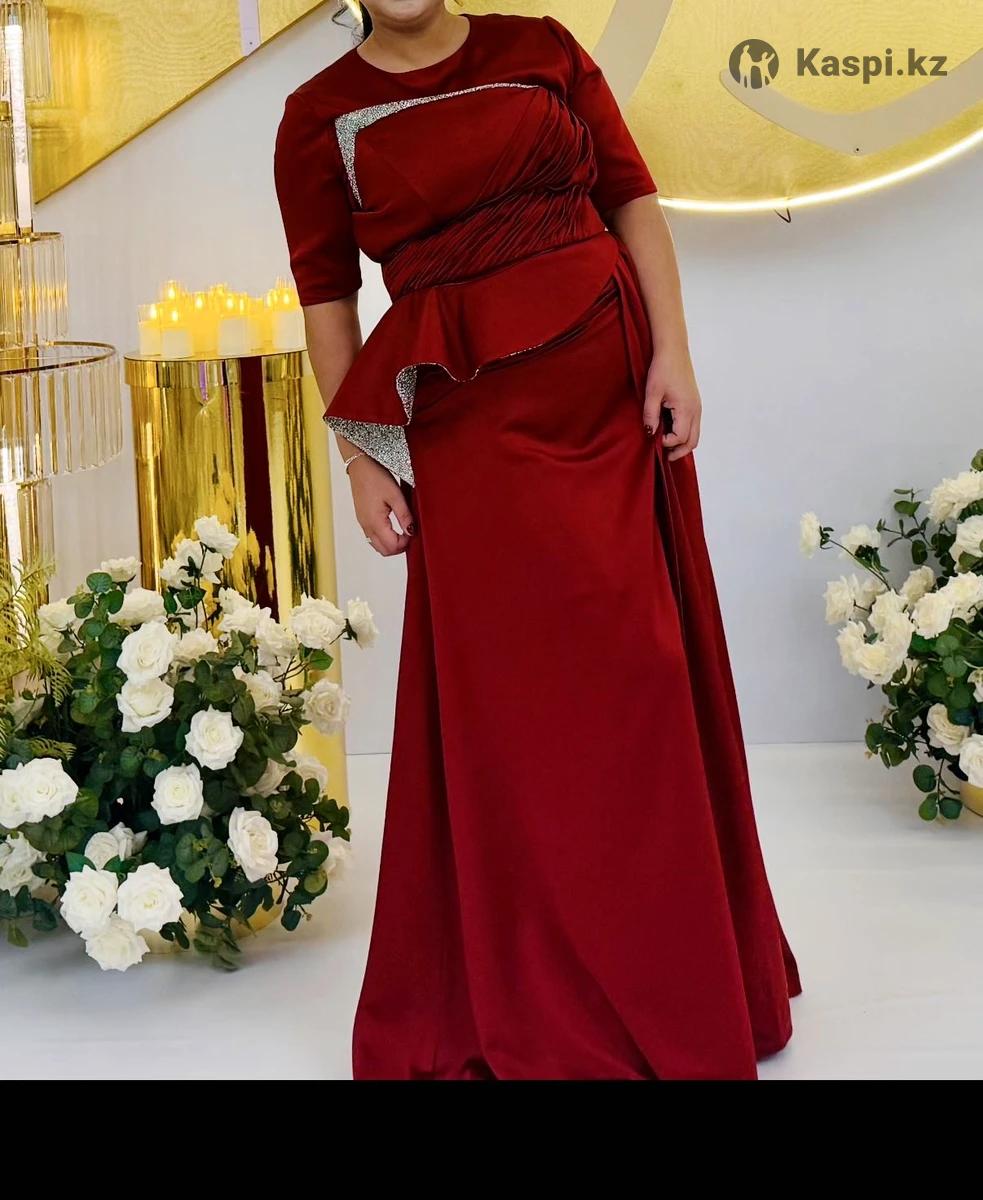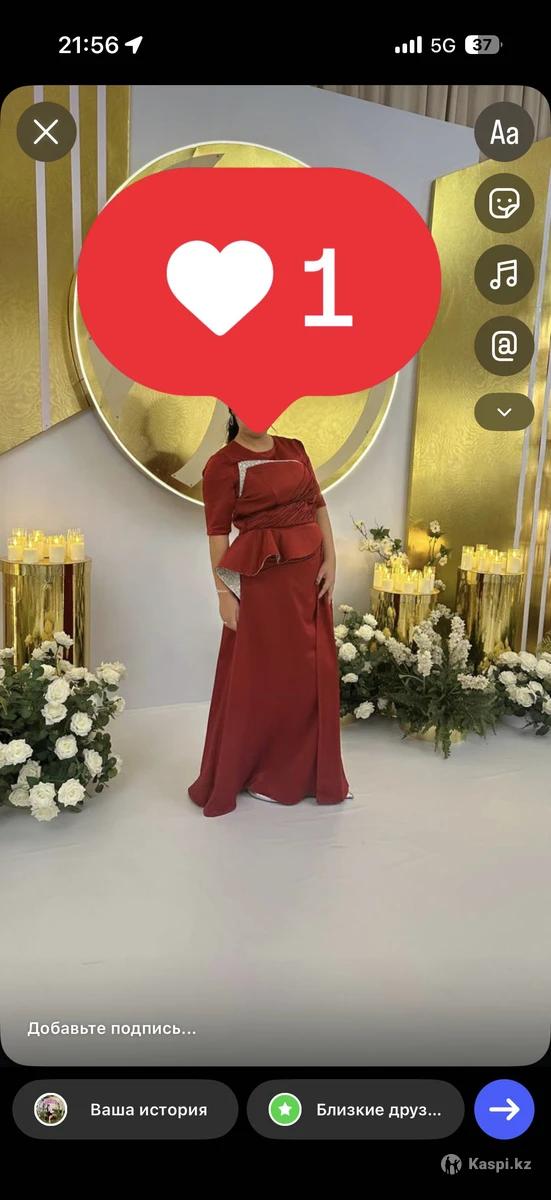 Бордовая элегантное платье очень шикарное, платье+ с вверху корсет, ткань дорогой, камень тоже очень дорогой, одевала один раз, подойдет на 50-52 размер, заказывала у JIDAR за 350000 тыс