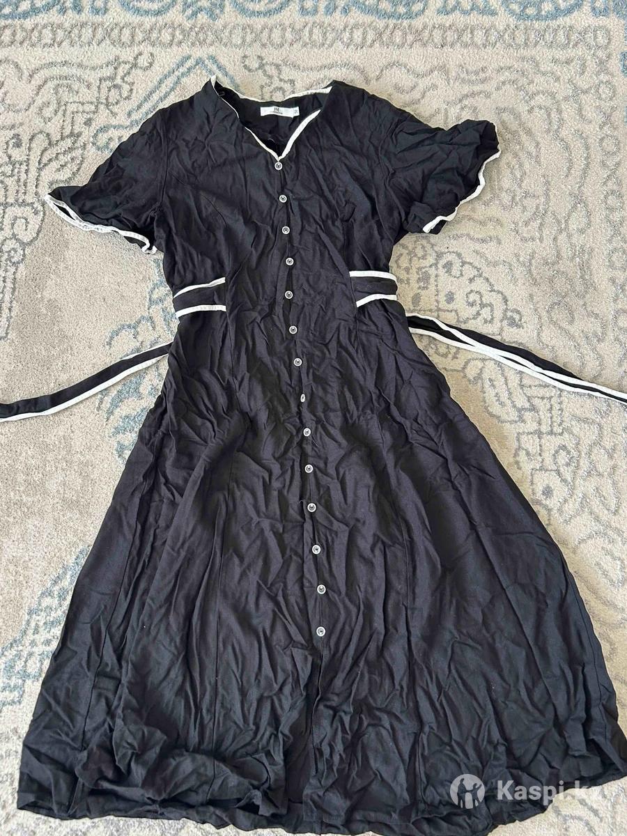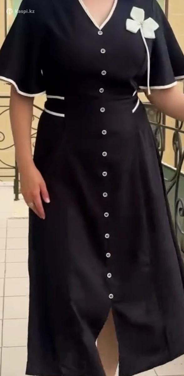 Продам элегантное черное платье Стильное платье миди с V-образным вырезом Отлично сидит по фигуре, подчеркивая талию. Универсальный вариант для любого повода В отличном состоянии