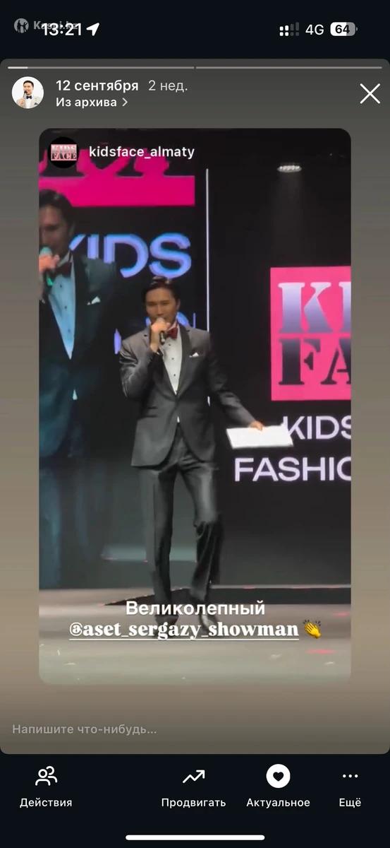 Великолепных, статных, веселых, с гармоничным чувством юмора ведущих много, и я один из них. И если Вы остановитесь на мне, буду очень рад провести Ваше мероприятие на высшем уровне на казахском, русском, английском и турецком языках. Вкратце о себе: ведущий, актер, блоггер, певец и спортсмен Асет Сергазы, харизматичный, веселый, энергичный, интеллигентный, высокий (192 см) и очень ПУНКТУАЛЬНЫЙ (прихожу на мероприятие за час до сбора гостей). Индивидуальный подход, обширная конкурсная программа и множество довольных клиентов, в том числе юридические лица, такие как: «Air Astana», «Gulpynai bakery», «Telefonik», «Freedom Bank», «Казахтелеком», «ПИНТА», «Галерея новостроек», «Exeed», «G&G Glamour», «Казгипроводхоз» “Аэропорт Алматы» «SULPAK», «KNAUF», «GROHE», «Royal Meat», «KFC», «Hardee’s», Сеть магазинов «Подружка» , MEGA , Magnum , TICKETON, “EVRIKA”, «HUAWEI», ZTE, “Passo Chantal” и многие другие компании Бонусы: 1. Подскажу по организации, ну и конечно же проведу: узату, свадьбы, тусау кесу, выпускные, юбилеи, корпоративы, презентации, спортивные состязания, детские ивенты, конференции, тимбилдинги, фэшн ивенты, открытия различных заведении, розыгрыши и другие развлечения и события (в том числе экологичные мероприятия). 2. Очень пунктуальный, а также работаю на сборе гостей (фуршет), встречаю, общаюсь, координирую итд. 3. Исполняю песни в живую (не проф.вокалист)от лирики (Elvis P) до DUDU Tarkan и J. Brown. 4. Без вредных привычек (не курю и не употребляю алкоголь. 5. В случае чего вовремя объявляю банкетную паузу, когда гостям надо просто пообщаться, потрапезничать под фоновую музыку. 6. Специалист по торжествам без алкоголя (в том числе полностью Халяль). И наконец работаю с диджеями которые ставят музыку, перебивки итд подстать гостям в зависимости от энергетики, атмосферы, настроения и ментальности. Звоните, пишите.