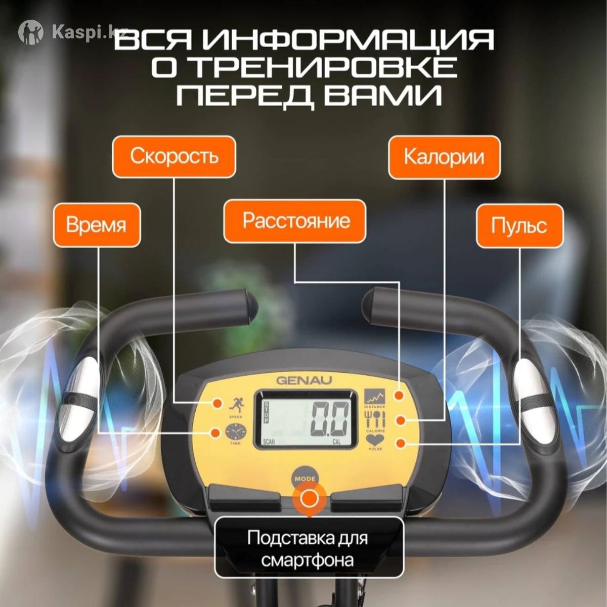 Велотренажер складной Genau XT-350 — ваш надежный спутник для домашних тренировок! Этот складной тренажер создан для занятий фитнесом в домашних условиях. Кардиотренажер относится к типу складных велотренажеров и отличается высокой прочностью и надежностью благодаря двухслойной покраске рамы. Преимущества тренажера для ног: - Особо прочная рама с двухслойной покраской обеспечивает долговечность и надежность конструкции. - Магнитная система нагрузки MagnetixPro с 8 уровнями позволяет индивидуально настроить тренировку под свои потребности. - Вес маховика: 4.5 кг обеспечивает плавное и комфортное педалирование. Компьютер: Черно-белый LCD дисплей отображает ключевые параметры тренировки: время, скорость, расстояние, пульс, калории и ручной режим для большей гибкости. Комфорт: Широкое сиденье с комфортной спинкой Soft Pure обеспечивает удобство во время занятий фитнесом. Мультипозиционный руль с прорезиненной оплеткой обеспечивает надежный захват. Нескользящие педали с регулируемыми фиксирующими ремешками обеспечивают безопасность и комфорт. Механизм складывания и транспортировочные ролики делают хранение и перемещение тренажера легким. Подставка под телефон/планшет позволяет использовать устройство во время тренировки. Габариты: Размеры в рабочем состоянии: 97.5х51х106.5 см Размеры в сложенном виде: 48х51х131 см Максимальный рост пользователя: 190 см Максимальный вес пользователя: 110 кг