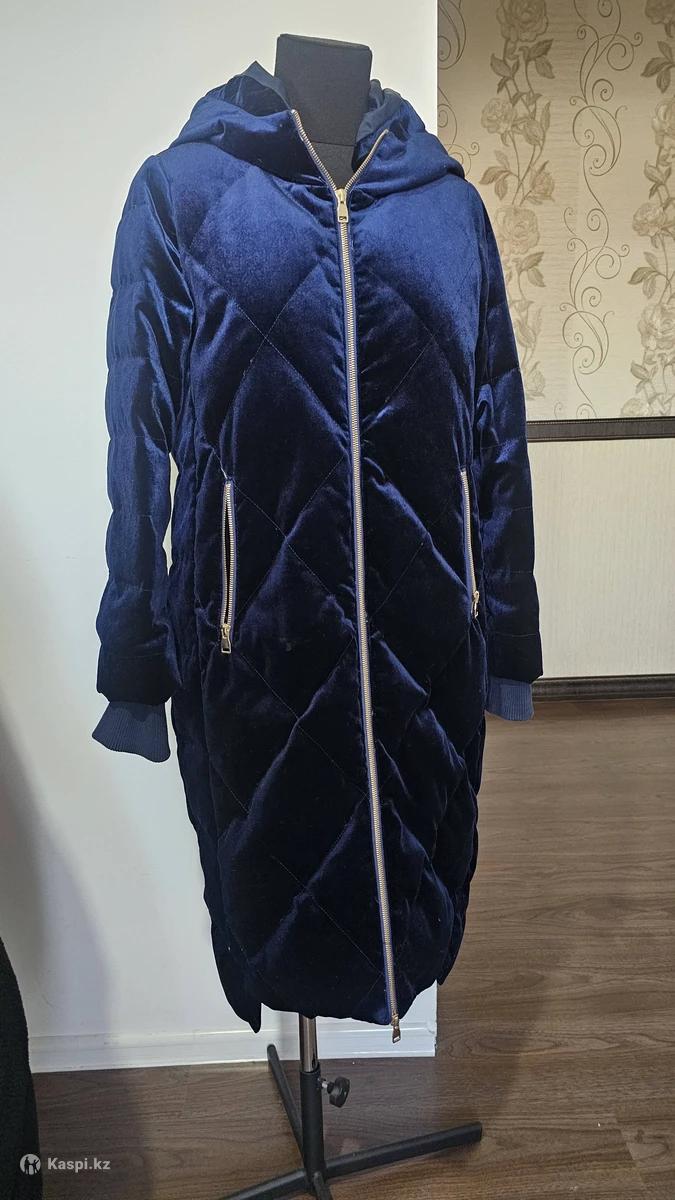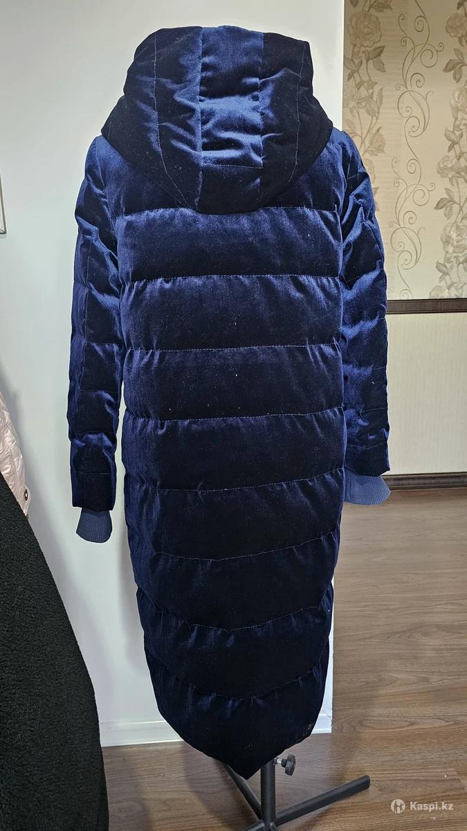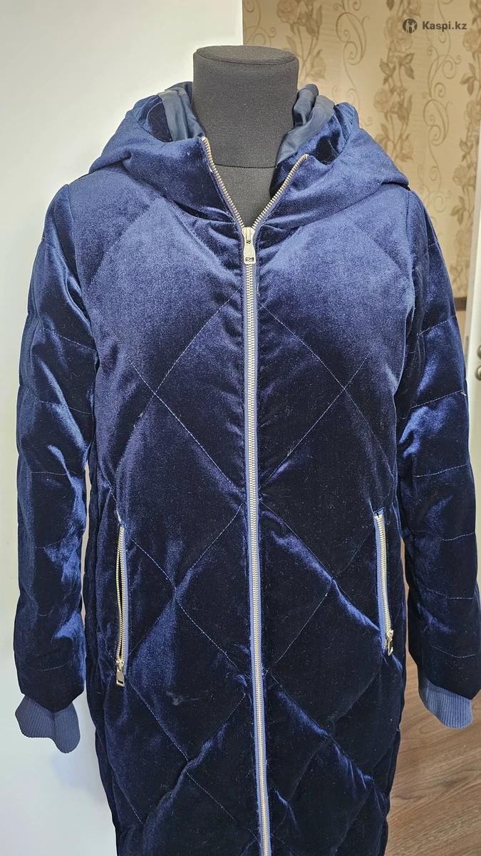 Велюровый теплый пуховик в благородном темно-синем цвете. Очень мягкий, уютный и визуально дорогой. Длинна ниже колен. Удлиненная модель отлично согревает в холодную погоду. Красивый благородный блеск велюра — смотрится намного стильнее обычных пуховиков. Есть капюшон, глубокие карманы на молниях, манжеты на рукавах — комфорт и тепло в любую погоду. Размер: S–M (реально подойдет на 42–46, за счет свободного кроя) Состояние: как новый, без дефектов