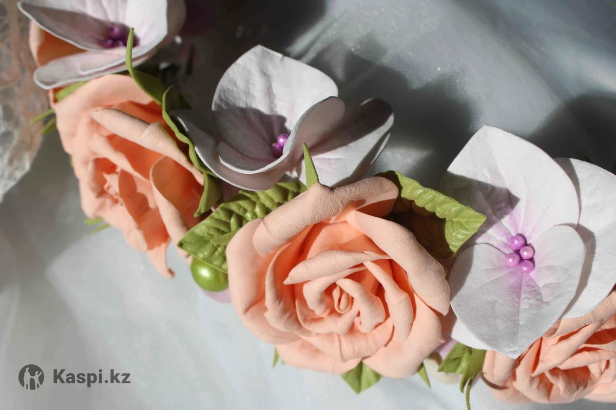 В наличии эксклюзивныый венок из цветов на голову! Ручная работа! В единственном экземпляре! Подходит деткам от 9-10 лет. А так же девушкам, женщинам! Отличная идея к 8 марта для дополнения образа на утреннике! Вариант для торжества, свадьбы, фотосессии, подарка или просто побаловать себя♥️ Корпус венка выполнен из металла, что послужим долгим пользованием. А сами цветы и листья выполнены вручную из фоамирана. Так же принимаю заявки на изготовление ободков, венков, резиночек по вашим индивидуальным предпочтениям. Работаю по предоплате. Самовызов район правого берега, ЕНУ по ул. Янушкевича