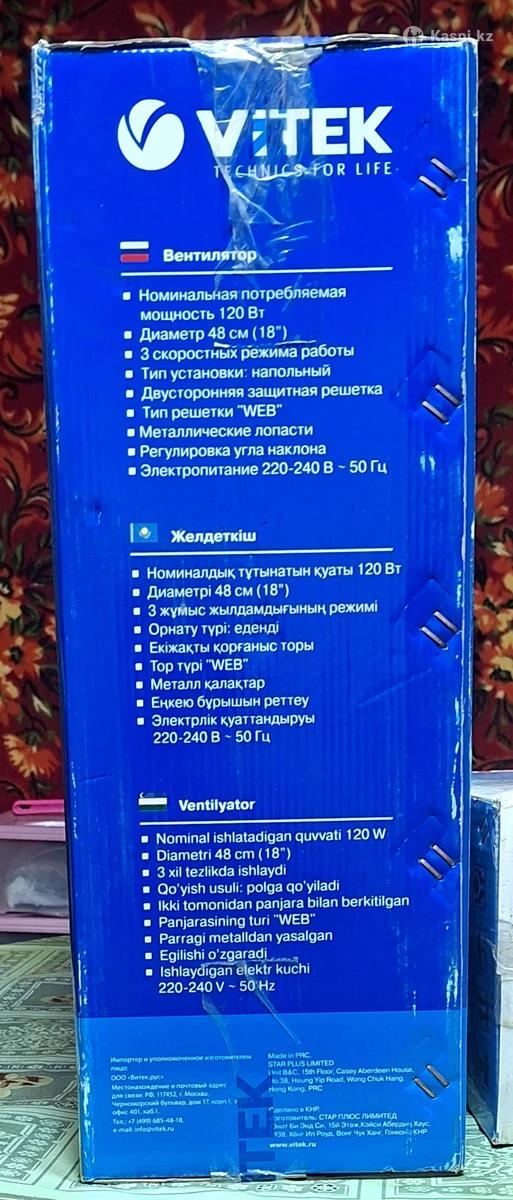 Продам новые в упаковке вентиляторы: 1. VITEK VT-1923 (фото 1-7) Напольный, но можно вешать на стену или поставить на стол, мощность 120 Вт, полностью металлический, 3 режима с корости Цена: 45000 тнг 2. StarLux SL-0133 (фото 8 и 9) Напольный, 3 режима скорости, пластик Цена: 10000 тнг 3. ATLANTA ATH-140 (фото 10-12) Напольный, 3 режима скорости, пластик Цена: 7000 тнг 4. SAPI-15 (фото 13-17) Ручной, настольный (можно поставить на компьютерный стол), 5 режимов скорости, работает от встроенного аккумулятора, заряжается от USB Цена: 5000 тнг
