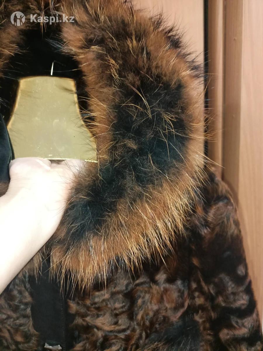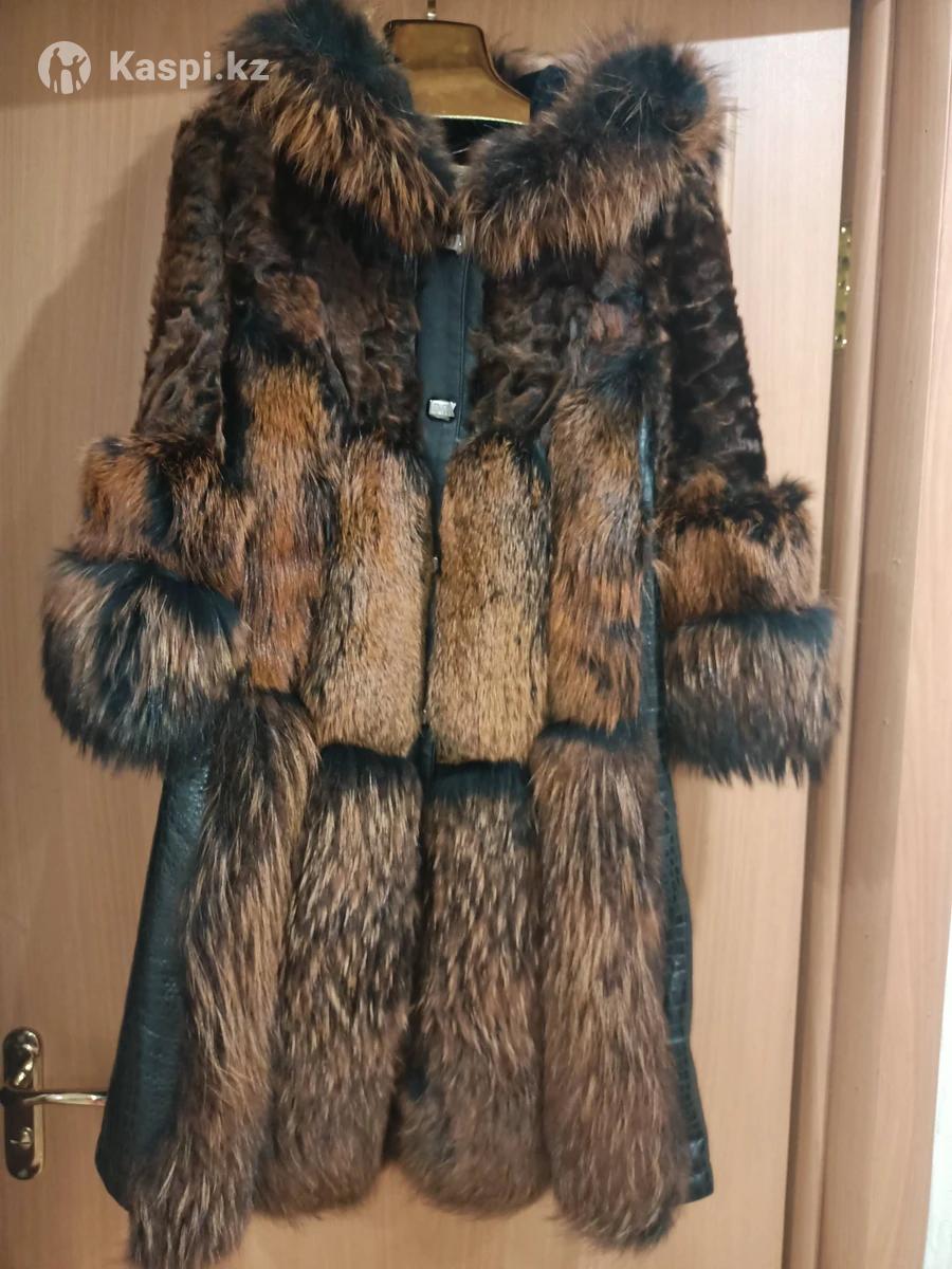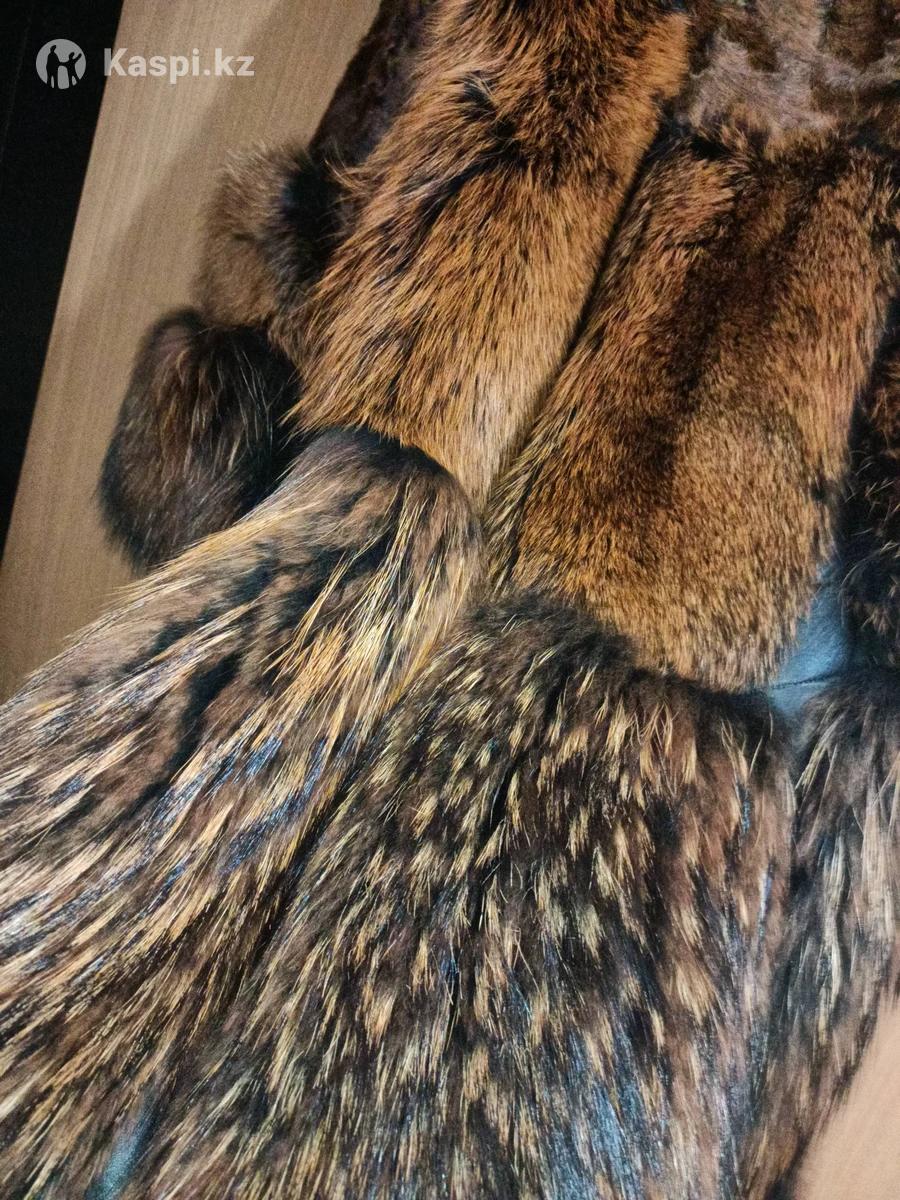 Шуба эксклюзив, , мех комби( енот,козлик,чернобурка) крашенная, длина 100,капюшон,,рукав укорочен,б/у один сезон