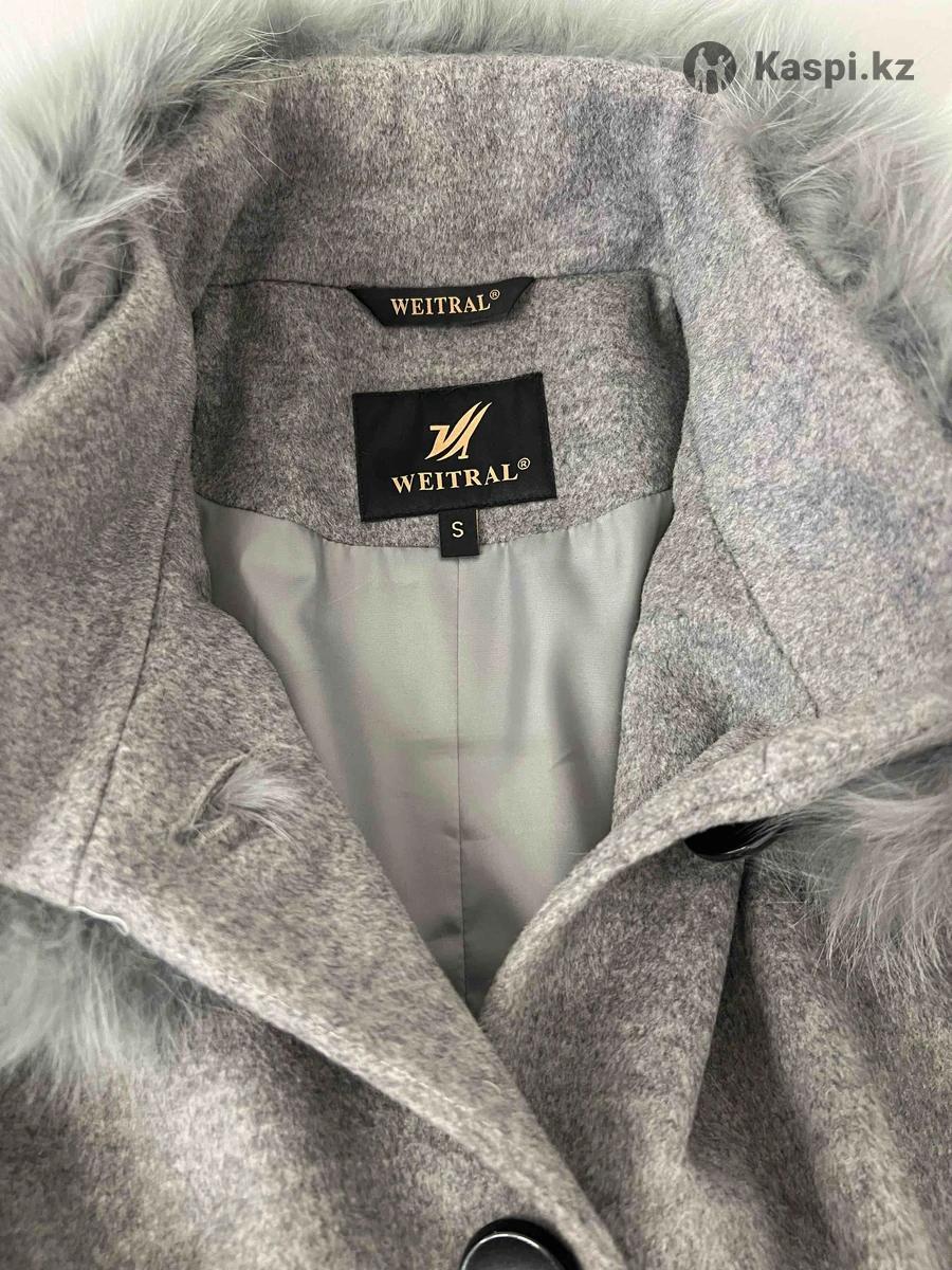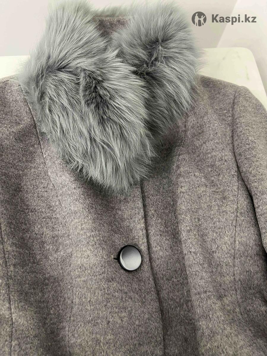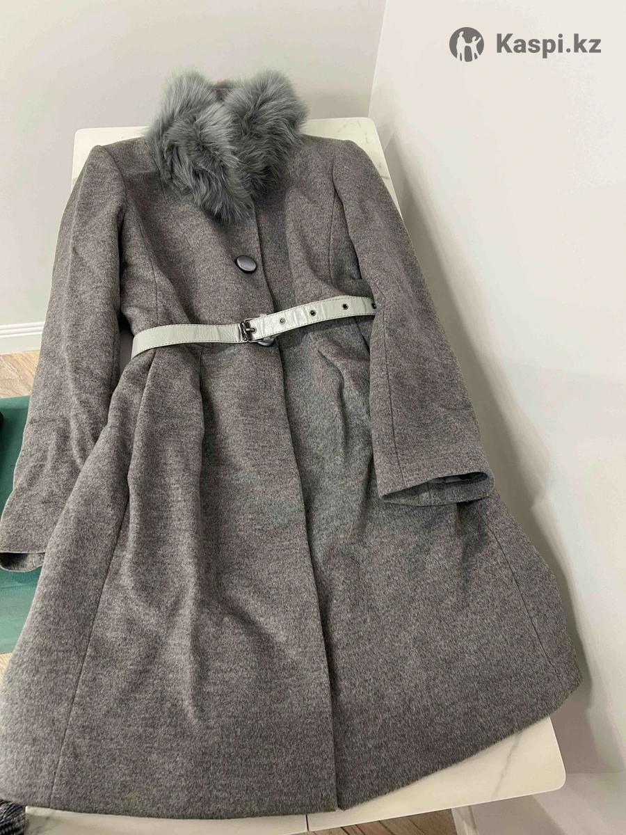 Серое пальто с мехом в размере S