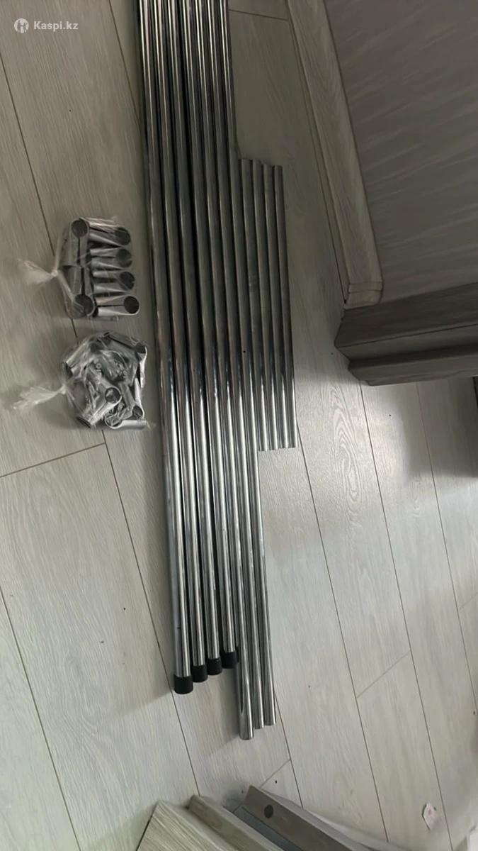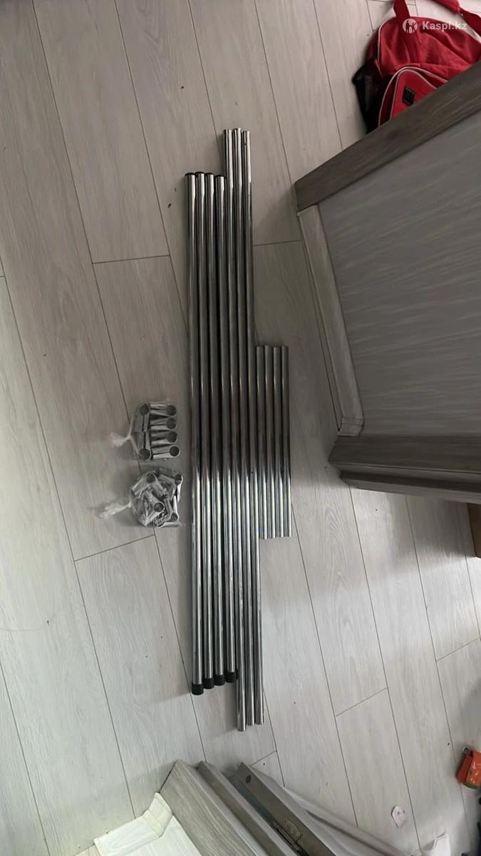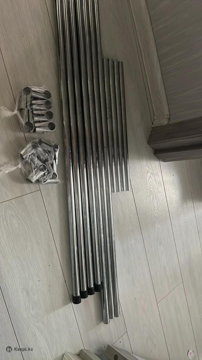 Рейл, шеллака сборная идеально для брюк или для детские вещей цена 15.000 тг состояние отличное. Размер длина 160 см высота 125 расстояние между стойкой 60 см общий в комплектации 10 шт трубочек 4 шт + 3шт+ 4 шт короткий , + угольная держательи болтики как на фото 4+ 6 шт итого тоже 10 шт. Уже в разборном виде! Завернула все детали вместе пищевой пленкой.