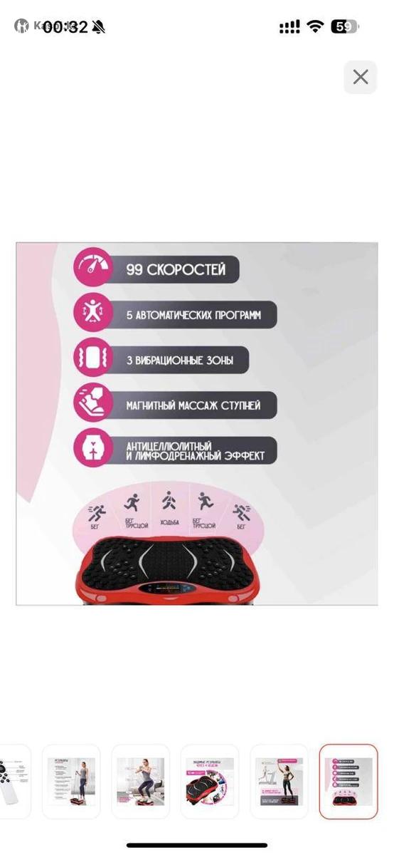 Практически новый вибротренажёр, в отличном состоянии. Всё работает: Bluetooth, пульт, режимы. Эффект чувствуется сразу. Цена 18 000 Покупала за 26 800 на Kaspi, продаю, так как начала ходить в студию и не пользуюсь. ❗️Есть противопоказания — пожалуйста, ознакомьтесь перед покупкой.