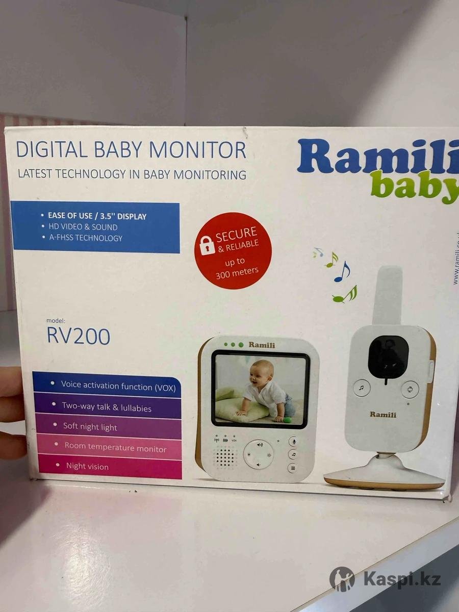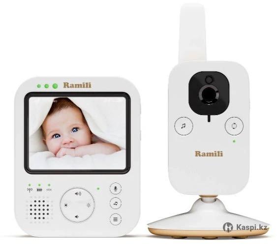 Видеоняня Ramili Baby RV200 с HD качеством изображения и звука. Дисплей: 3.5 дюйма. Радиус действия: до 300 метров. Функции: голосовая активация (VOX), двусторонняя связь, колыбельные мелодии. Безопасность: технология A-FHSS для защищенного соединения. Дополнительно: ночной режим съемки и мягкий ночник на детском блоке.