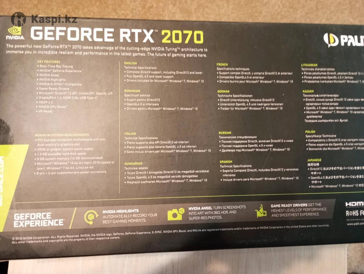 Видеокарта Palit RTX2070 8Gb GDDR6.Б/У для гейминга, для майнинган не использовалась.