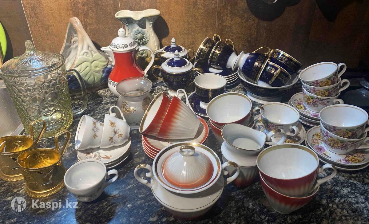 За ненадобностью продаю разную посуду советских времен. Сервиз чайный Барановский фарфоровый завод 6 чашек с блюдцами сахарница молочник - 10 тыс тенге Сервиз фарфоровый с темно-синим кобальтовым покрытием с золотой росписью Довбышского фарфорового завода - 15 тыс. тенге. Кофейные пары 6 пар рижского производства 8 тысяч. Кофейник красный немецкий -2000 тенге Кофейные пары 3 штуки пр-во Kahla ГДР 3000 тенге. Керамическая ваза и корзина для фруктов по 2000 за предмет. Вазочка Богемия матированное стекло с золочением отдам за 3000 из-за потертостей. Графин из толстого стекла с объемным шестигранным узором (соты) и крышкой -2500 тенге. Подстаканники 3000 за оба.