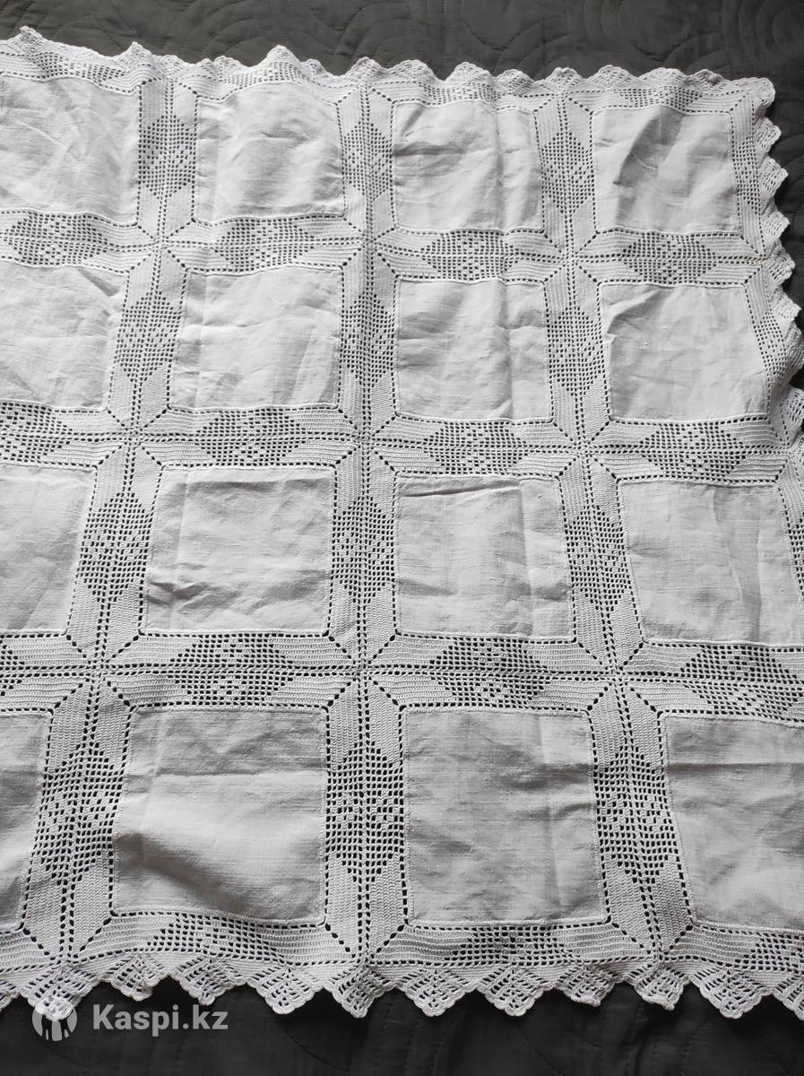 Винтажная скатерть выполненная в технике филейного вязания крючком. Стиль вязания характерен для изделия прошлых лет. Материал: хлопок. Размер: 85 см85 см. Ручная работа, высокая детализация узора, наличие каймы по краю.