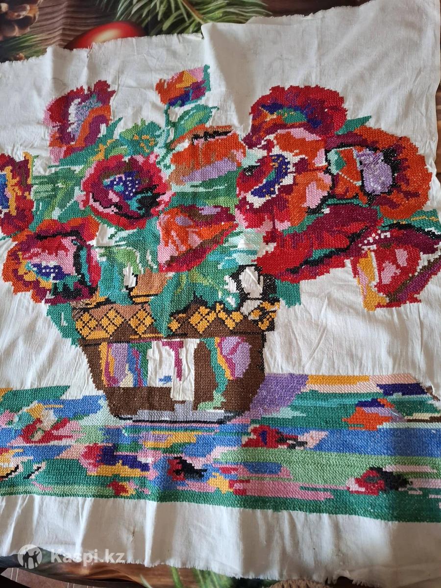 Винтажная вышивка крестом. СССР, 1940-е годы По цене - 25,000 тенге Продается старинная ручная вышивка крестом, выполненная бабушкой около 80 лет назад. Полностью ручная работа, натуральная ткань, оригинальный винтаж без реставрации. 🧵 Техника: ручная вышивка крестом 🕰 Возраст: около 80 лет 📐 Размер: длинна 75 см , ширина 75 см 🧺 Состояние: хорошее винтажное, есть следы времени 🏡 Отлично подойдет для коллекции, интерьера в стиле vintage / cottagecore, оформления рамой или текстильного проекта Единственный экземпляр. Город Алматы,Казахстан Самовывоз. Контактный номер : + Звонить или лучше писать на !