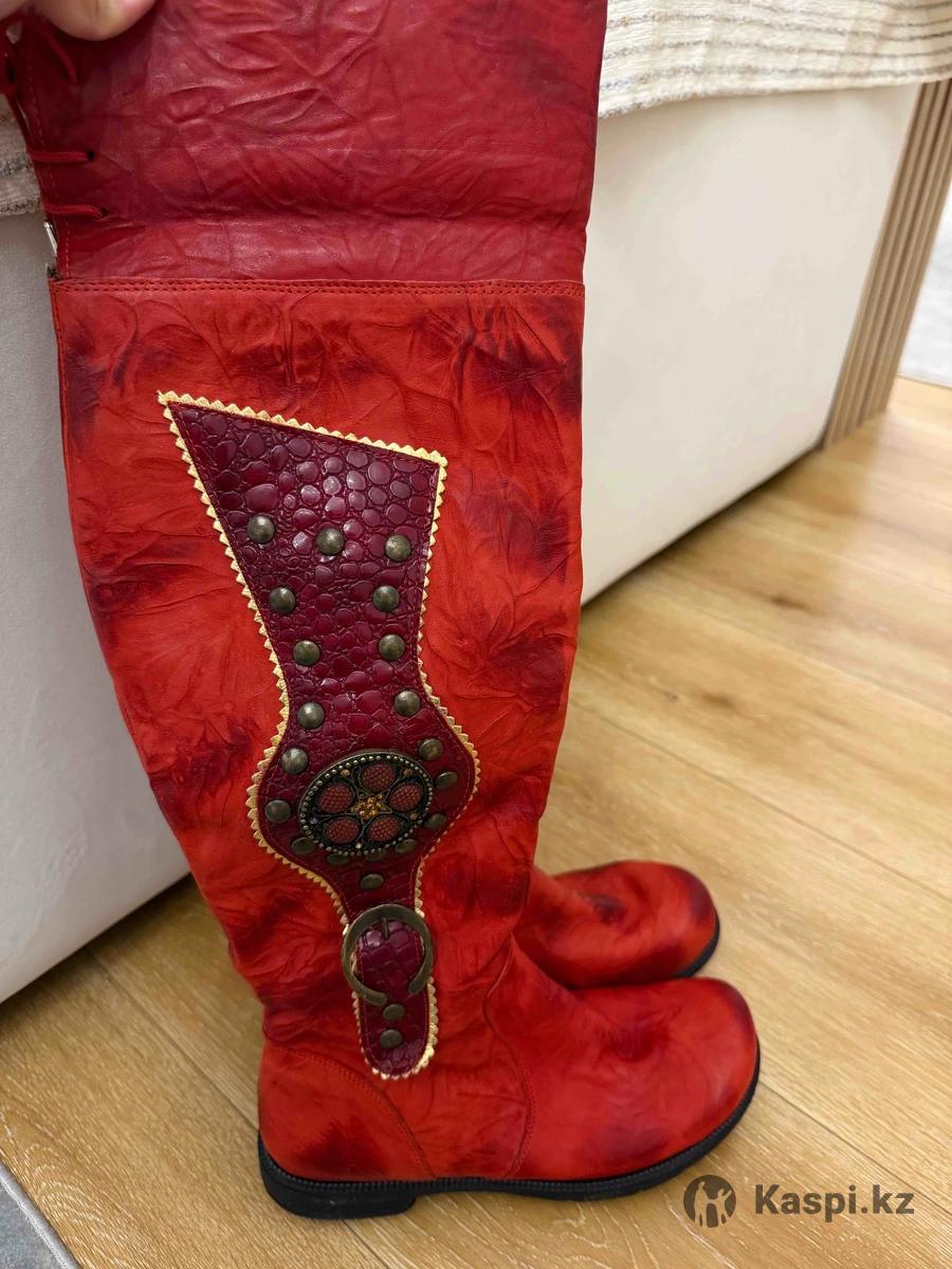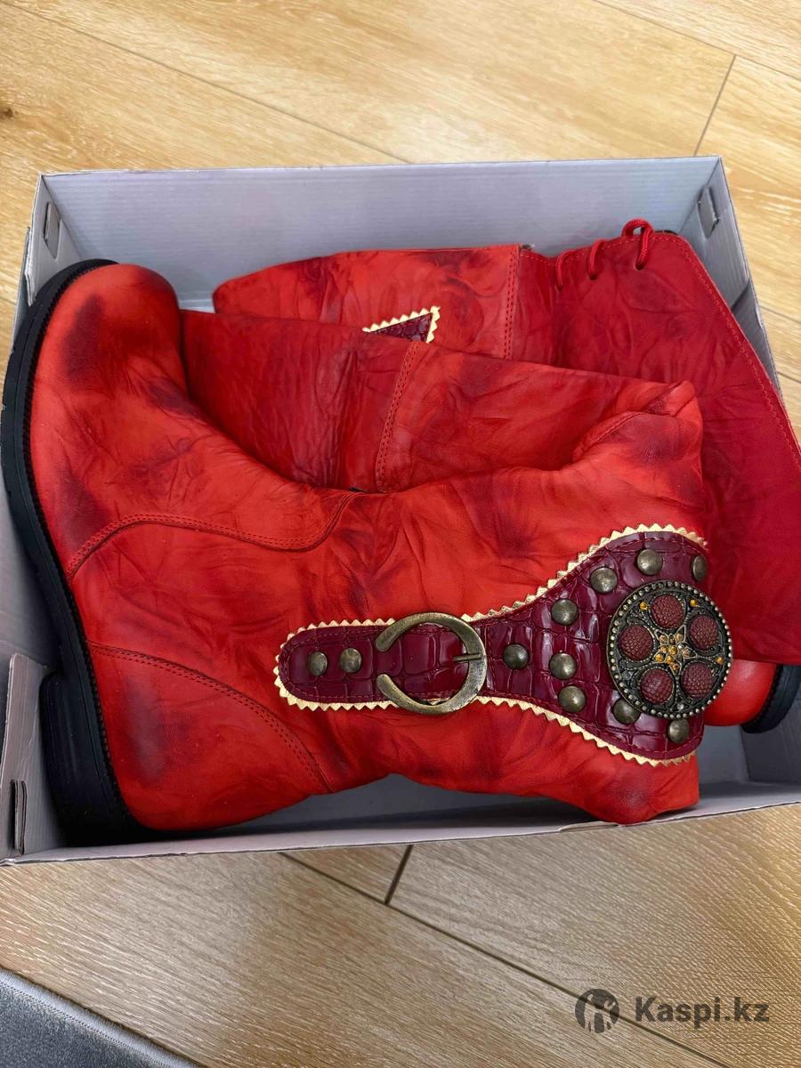 Винтажные зимние женские сапоги ботфорты. Качественные кожаные сапоги. Моделька для женщин, удобные, акцентные детали, стильная. ни разу не ношеное. Натуральная кожа и все внутри мех тепло. Новые. Цвет: красный.