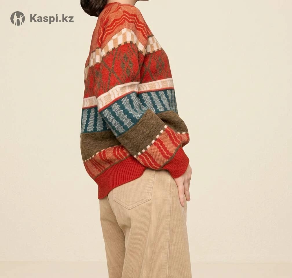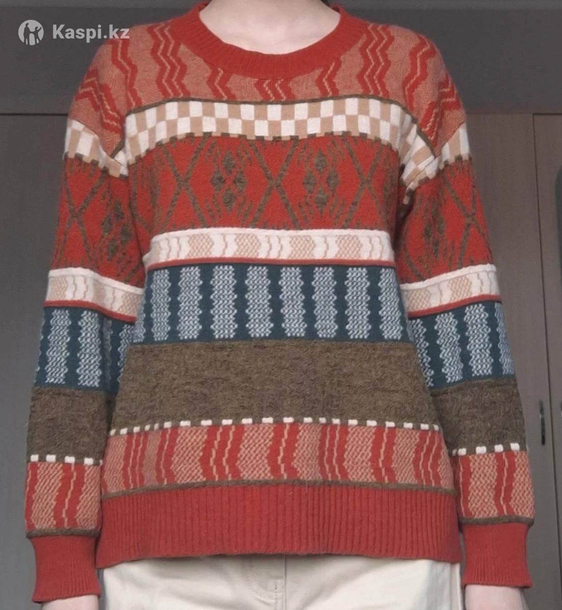 Продаю стильный винтажный свитер. Идеальный вариант для весенних прогулок: теплый и уютный, отличное состояние без катышков и дефектов. Уникальный геометрический узор в теплых ретро-оттенках круто сочетается со светлыми брюками и денимом.