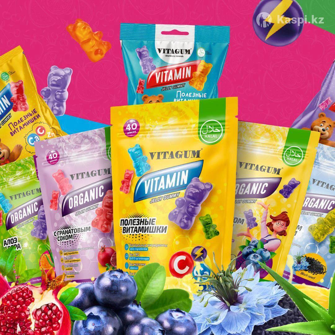 Сладость, которая приносит пользу: полезные витаминки для детей!" Порадуйте своего ребенка вкусными и полезными мармеладками, которые можно смело давать каждый день! Полезные витаминки Vitagum созданы из растительного, халяльного желатина, без натуральных фруктов и ягод искусственных красителей, ароматизаторов. Они не только восхитительно вкусные, но и обогащены витаминами и минералами, которые так необходимы растущему организму Печенье мармеладки Vitagum - лучший выбор для вашего малыша? 100% натуральный состав: только фрукты, ягоды и натуральные загустители, такие как пектин и агар-агар. - Безопасны и гипоаллергенны: не содержат глютен, лактозу и другие возможные аллергены. Сниженное содержание сахара: сладость за счет натуральных фруктов , чтобы радость от лакомства была без вреда для здоровья. - Яркие вкусы и цвета от природы: никаких искусственных добавок только польза и настоящий вкус. Пусть каждый кусочек будет не только удовольствием, но и вкладом в здоровье вашего ребенка. Полезные витамишки забота о вашем малыше с любовью и вниманием к каждому ингредиенту. это Попробуйте и убедитесь, что сладости могут быть полезными!