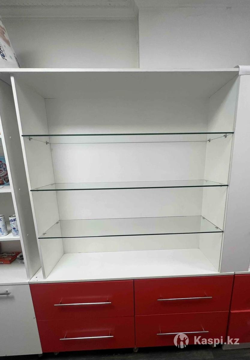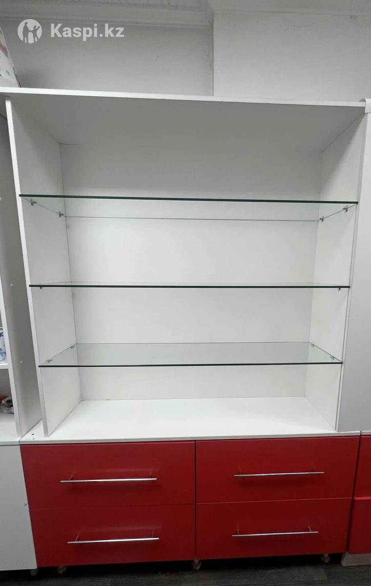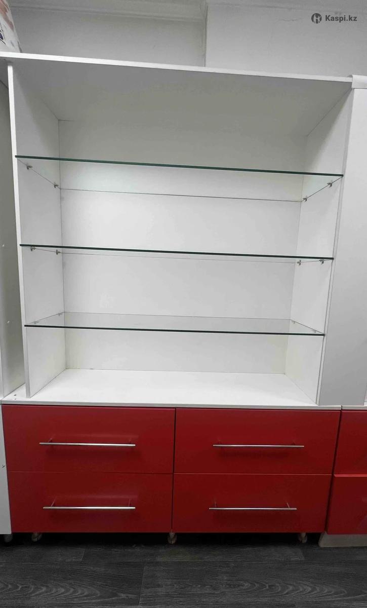 Продаю качественную торговую полку. Снизу 4 выдвижных ящика, все работают отлично и выдерживают тяжелые товары. Сверху 3 полки из толстого прочного стекла. Стекло заказное, усиленное и очень устойчивое к удару. Конструкция крепкая и надежная. Состояние отличное. Самовывоз с мкрн Кайрат