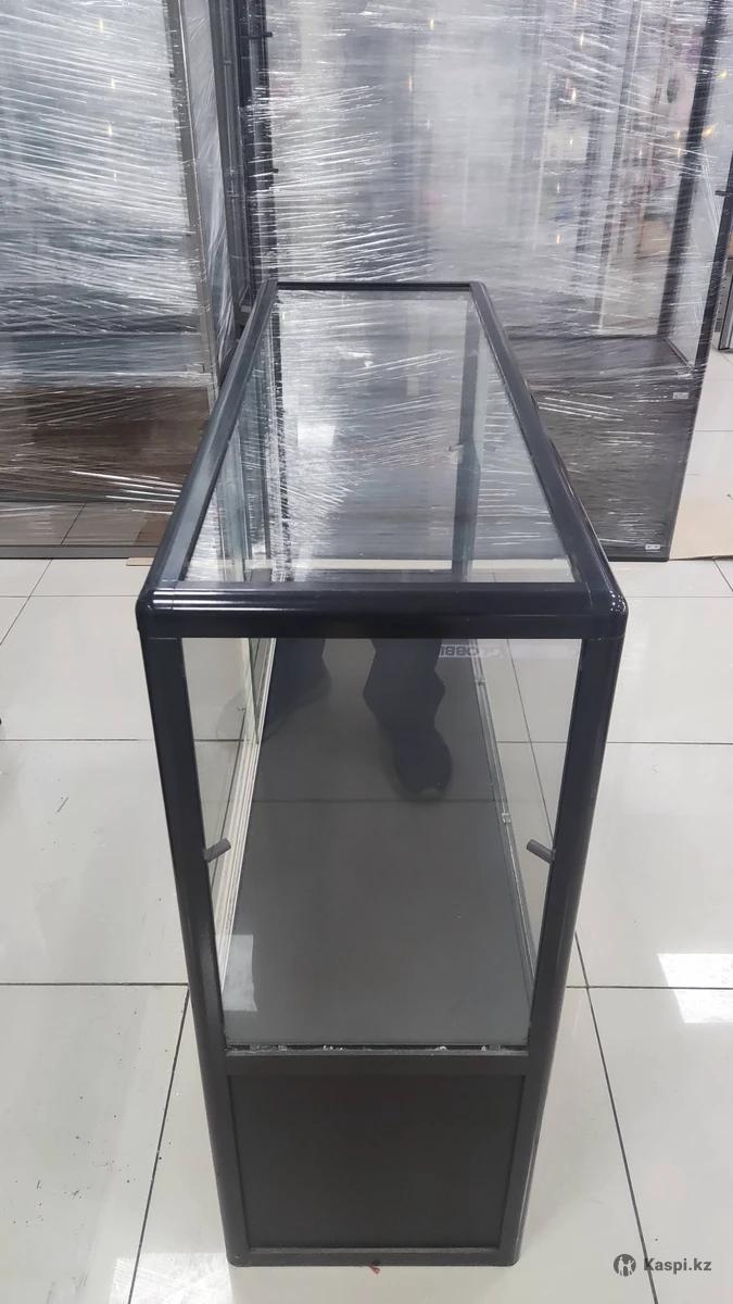Хорошее состояние, стекла без трещин, черный цвет. Изготовлены из алюминиевого профиля. Двери и полки из стекла. Размер витрины: высота 90 см, ширина 100 см, толщина 35 см Количество 2 штуки Цена 49000 тенге за штуку Предварительно необходимо предупредить перед приездом.