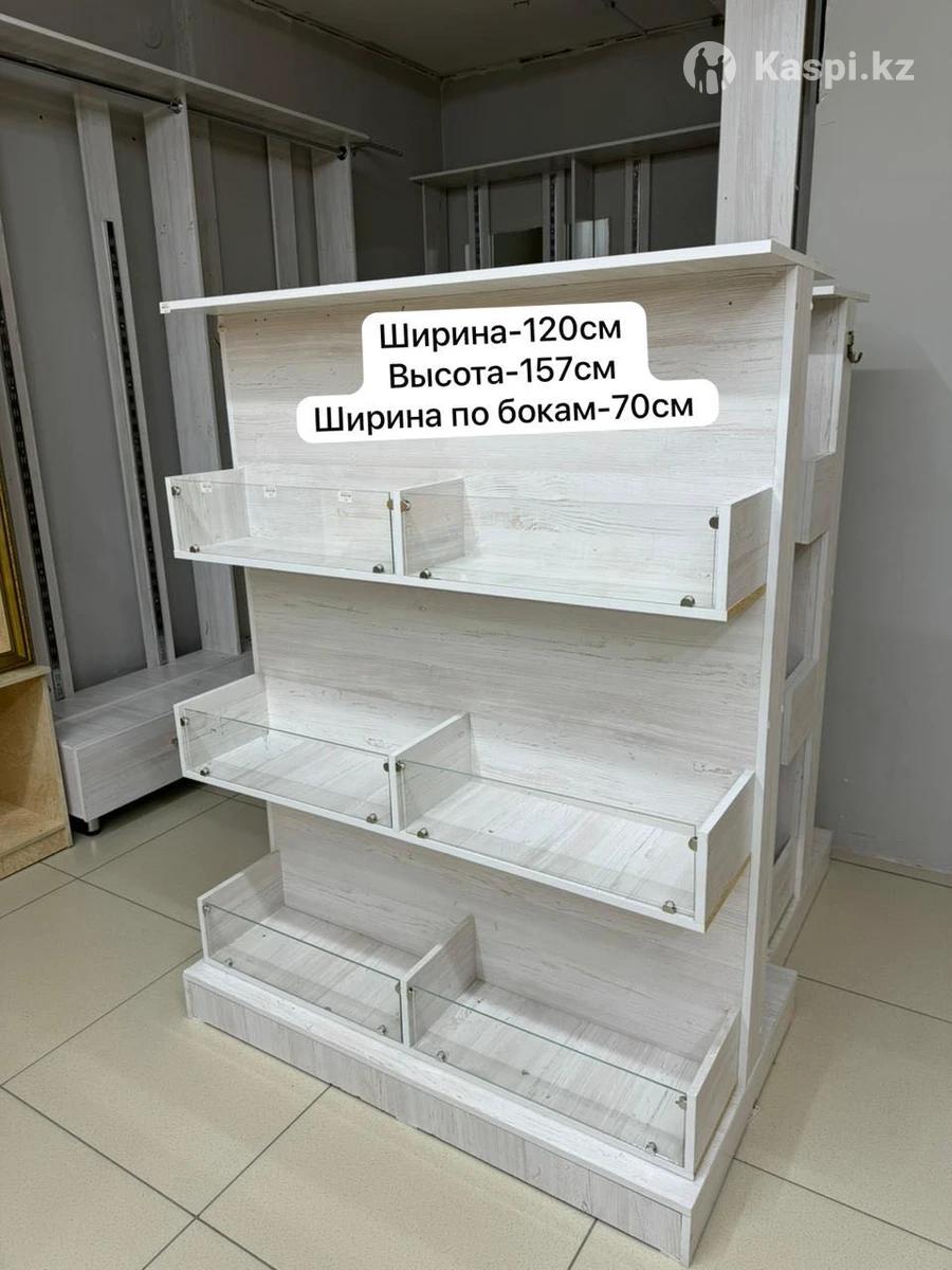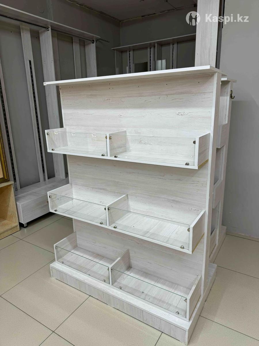 Витринная полка для магазина, подойдет для много чего. Двухсторонняя, в продуктовые магазины, в одежду, нижнее белье. Сами использовали в текстильный магазин. Очень прочная.