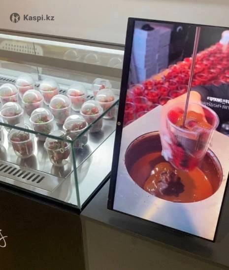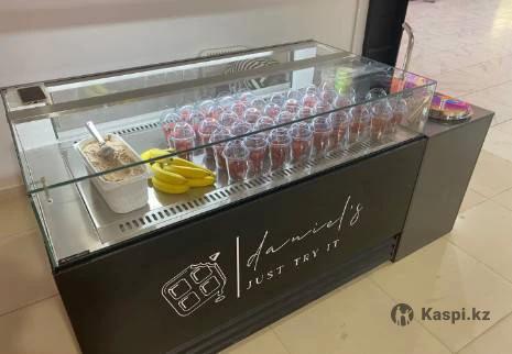 Витринный холодильник сделанный на заказ: 150-длинна, 120-высота, 80-глубина. Держит температуру 4-7 градусов. Пользовался месяц.