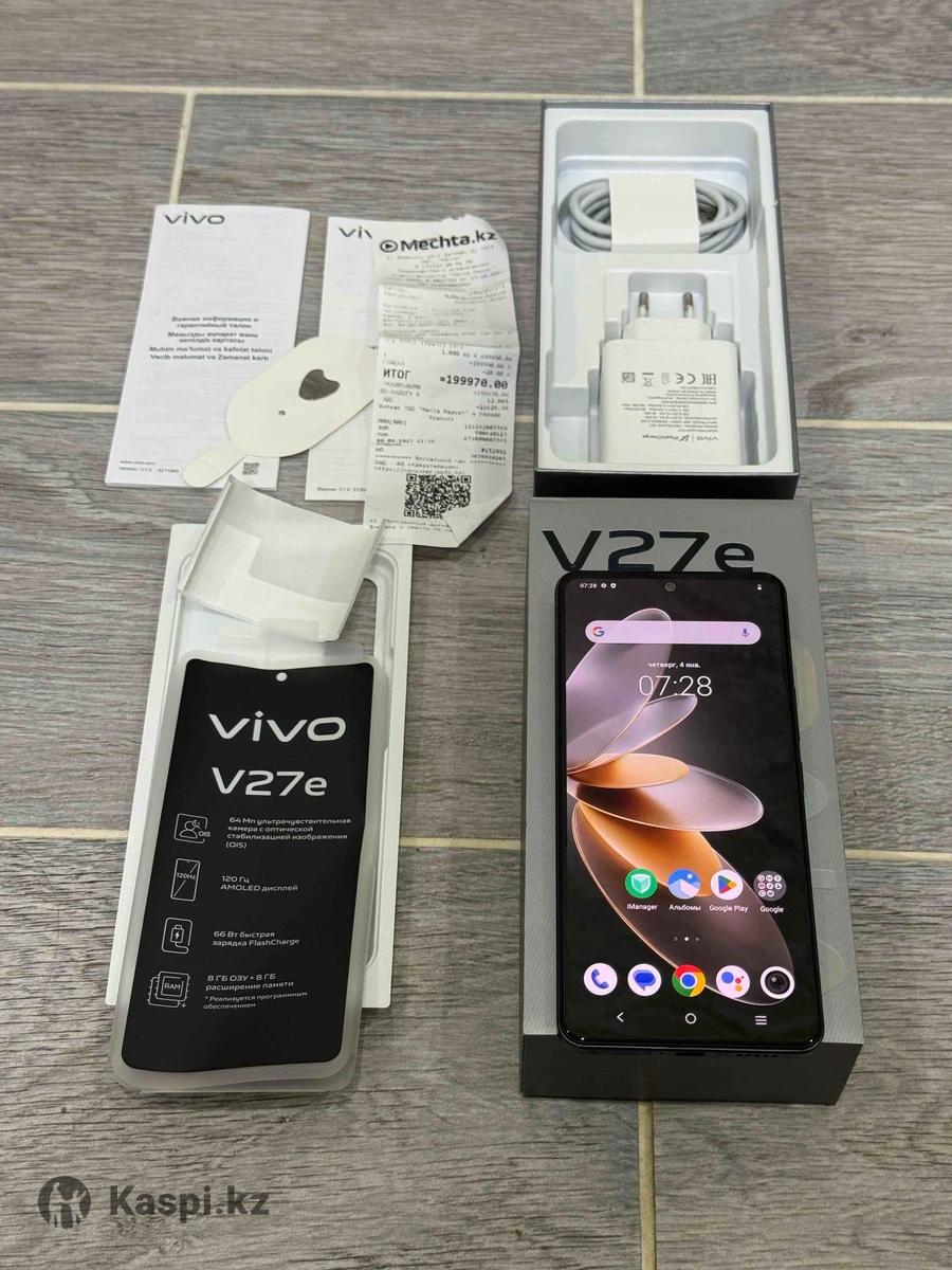 В продаже телефон Виво В27Е В идеальном состоянии Полный комплект (коробка, зарядка, адаптер, телефон, чехол, чек о покупке) В одних руках, чек о покупке имеется Память 128гб Оперативная память 8гб Быстрая зарядка, адаптер большой Аккумулятор 4600мАч, хватает надолго Покупал в мечте за 200тысяч В ремонте не был, минусов нет Интересует обмен на айфон 11 без минусов Так же возможен небольшой торг Здесь сообщения не читаю писать втспп По остальным вопросам звонить/писать по нижеуказанному номеру