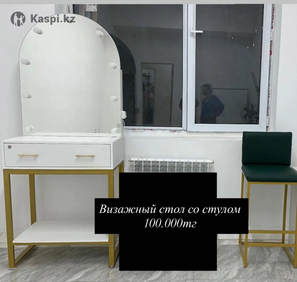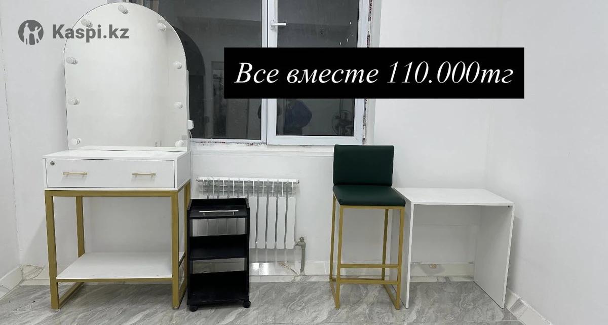 Срочно продам мебели для салона красоты!!! Все почти новые , только по 3 месяцев пользовались!!! Визажный стол со стулом 100.000 Помощник 5000 Стол Помощник 5000 Можно все вместе купить за 110.000 И можно ОТДЕЛЬНО !!! НЕ ЗВОНИТЬ , только пишите на 8.7.0.7.014...15...01 Район АЛМА СИТИ