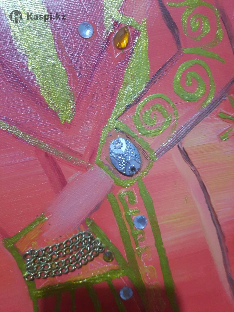 ⚜️это была моя мечта и желание любить и быть с любимым💕но в жизни оказывается не все золото которое блестит💎 и всему свое время под Небом☁️🌈☀️⏳️ картина написана мною маслом🎨, с добавлением золотой💫 краски 🎨 и украшена бисером💎 и металлическими материалами🌸🦋 Красный цвет это цвет Царской власти и Любви❤️ Золотой цвет это цвет славы Божьей⚜️ и богатства, ведь Бог автор богатства "Богатство" происходит от слова "Бог"💕 над головой молодой пары💕 изображен Шанырак в форма креста✝️ по исследованиям оказалось что предки казахов верили в Господа Иисуса Христа и были христианами✍️🙏💕😊 слава 👑 Господу Иисусу за таланты и дары🙏💕🔥 есть скидка 💝🎁😊🔥 прекрасный подарок для ваших любимых друзей, родных и близких 💝💝💝💝💝❤️❤️❤️❤️