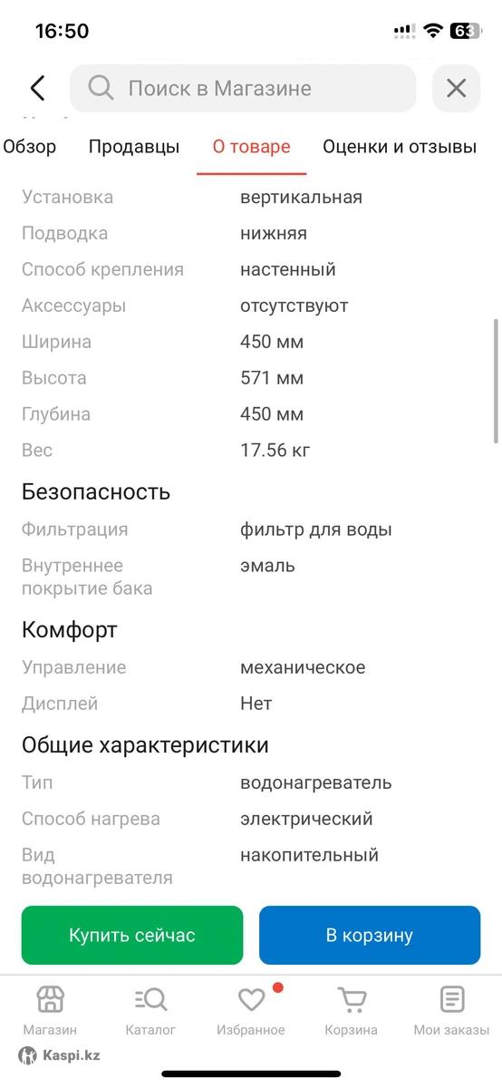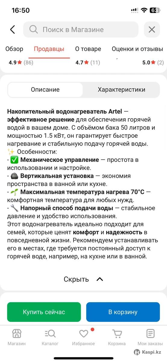 Накопительный водонагреватель Artel - эффективное решение для обеспечения горячей водой в вашем доме. С объемом бака 50 литров и мощностью 1.5 кВт, он гарантирует быстрое нагревание и стабильную подачу горячей воды. Особенности: - V Механическое управление - простота в использовании и настройке. - Вертикальная установка - экономия пространства в ванной или кухне. - • Максимальная температура нагрева 70°С — комфортная температура для любых нужд. - Напорный способ подачи воды - стабильное давление и удобство использования. Этот водонагреватель идеально подходит для семей, которые ценят комфорт и надежность в повседневной жизни. Рекомендуем устанавливать его в местах, где требуется постоянный доступ к горячей воде, например, на кухне или в ванной. Можно оформить рассрочку через Kaspi