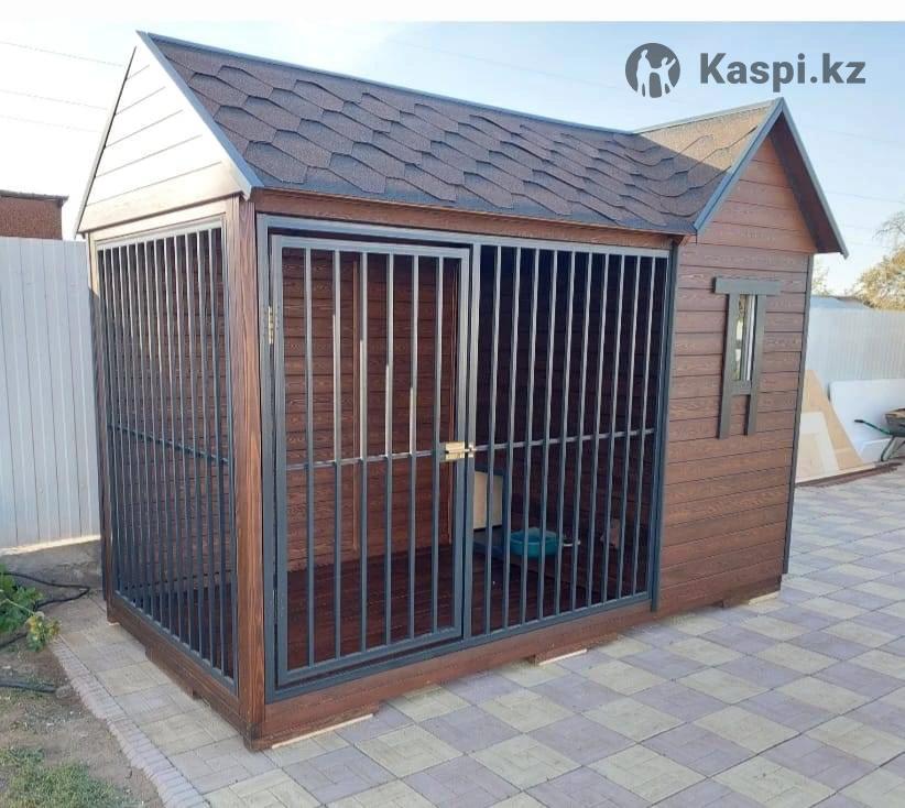 На фото вольер с утепленным зимником для собак Цена - 1 500 000 тг В цену входит Вольер с утепленным зимником с теплым полом Установка вольера Доставка и подготовка места к установке в цену не входит Длина 350 см Ширина 170 см Высота 250 см Зимник 120170 см Обшит вагонкой лиственницы Окрашен спецраствором цветного воска Видеообзор вольера можно увидеть в нашем инстаграм