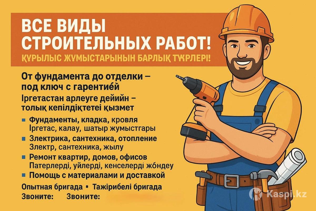 🏗️ ВСЕ ВИДЫ СТРОИТЕЛЬНЫХ РАБОТ! 🧱 От фундамента до отделки — под ключ с гарантией! 🔹 Фундаменты, кладка, кровля 🔹 Внутренняя и внешняя отделка 🔹 Электрика, сантехника, отопление 🔹 Ремонт квартир, домов, офисов 🔹 Помощь с материалами и доставкой 💪 Опытная бригада ✅ Гарантия качества