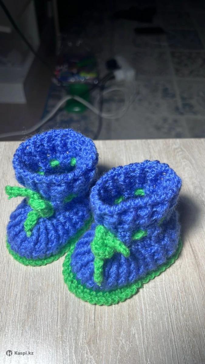 С любовью вязанные пинетки ❤️для ваших деток тепло и уютно ❣️🥰 Синенькие для малыша с двойной подошвой ❤️