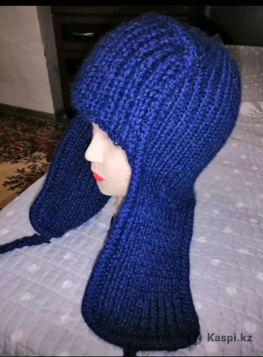 пряжа пух норки, вязанная ушанка зимний вариант