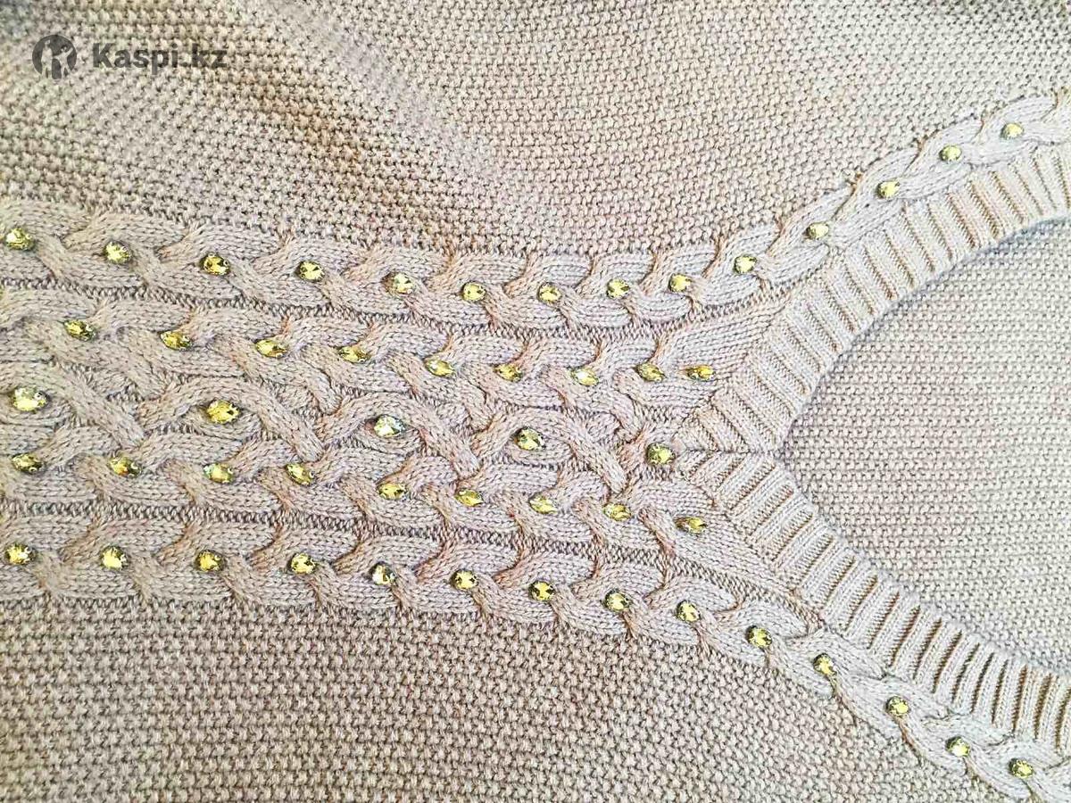 Размер S. Уютный вязанный костюм, который хочется носить не снимая. Мягкий, не колется. Декор из камней спереди и по рукавам . В составе: вискоза, нейлон , шерсть.