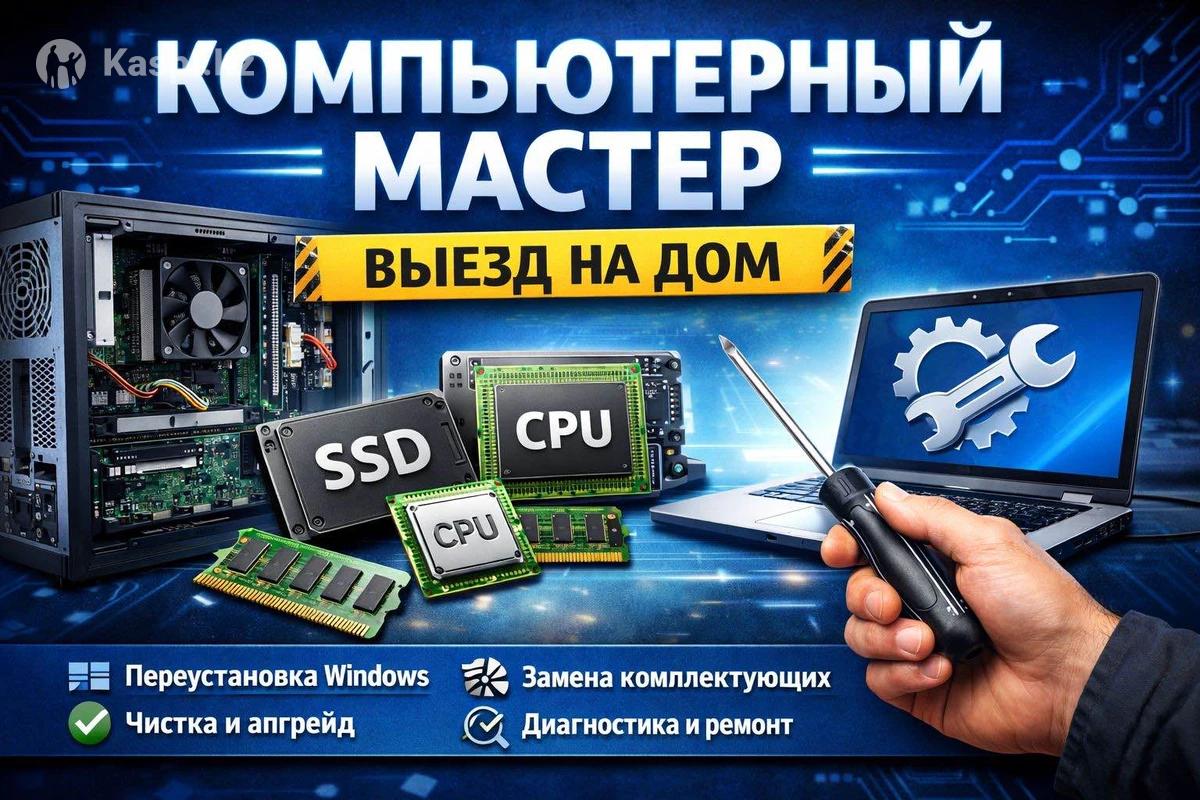 Услуги по настройке, обслуживанию и ремонту компьютеров и ноутбуков с выездом на дом или в офис. 🔧 Услуги: • Переустановка Windows 10 / 11 • Установка необходимых программ и драйверов (Microsoft Office, Adobe Photoshop, 3D Max, AutoCAD и др.) • Замена и установка комплектующих: • SSD / HDD • ОЗУ • процессоры • замена термопасты, чистка от пыли • Апгрейд компьютеров и ноутбуков • Диагностика неисправностей (медленно работает, перегревается, не включается) ✅ Выезд к клиенту ✅ Аккуратная и честная работа ✅ Гарантия на оказанные услуги 📍 Работаю по городу Астана 📞 Пишите или звоните — отвечаю быстро