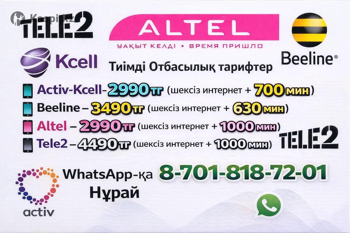 🔥 Жеңілдік бағасына үлгеріңіздер Activ – 2990 тг Beeline – 3490 тг Altel – 2990 тг Tele2 – 4490 тг Шексіз интернет ♾️+ минуттар ⏱ 5–10 минутта онлайн қосамын ✔ Алдымен қосамын, тексересіз — сосын төлем 📲 Жақындарыңызбен бөлісіңіздер 📞 Байланыс: 8701 818 72 01