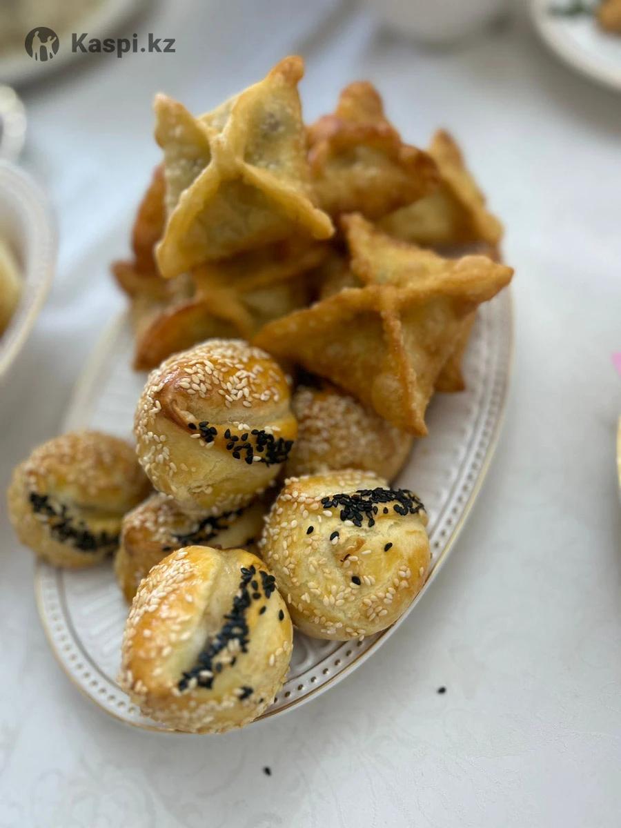 Баурсаки, лепешки, самса из слоенного из песочного теста пироги с разными начинками.